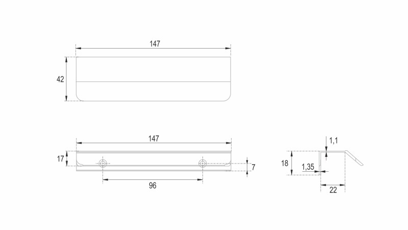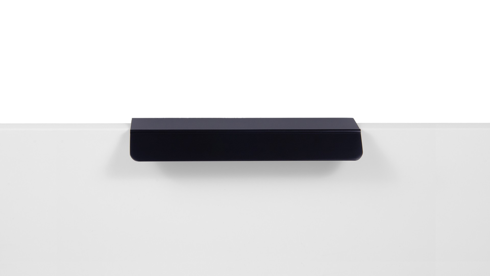 KANT RT013 можно устанавливать не только вертикально, но и горизонтально — для завершённого образа мебельного гарнитура. Модель закрепляется на верхний торец фасада, саморезы (приобретаются отдельно) вкручиваются в отверстия с фаской с задней стороны фасада.