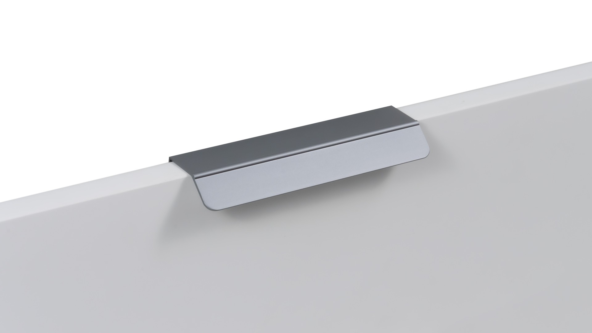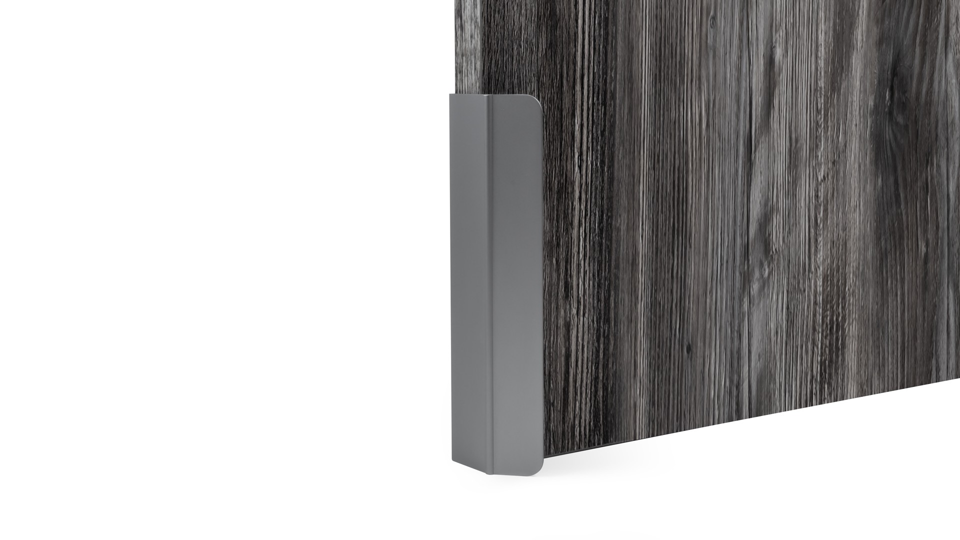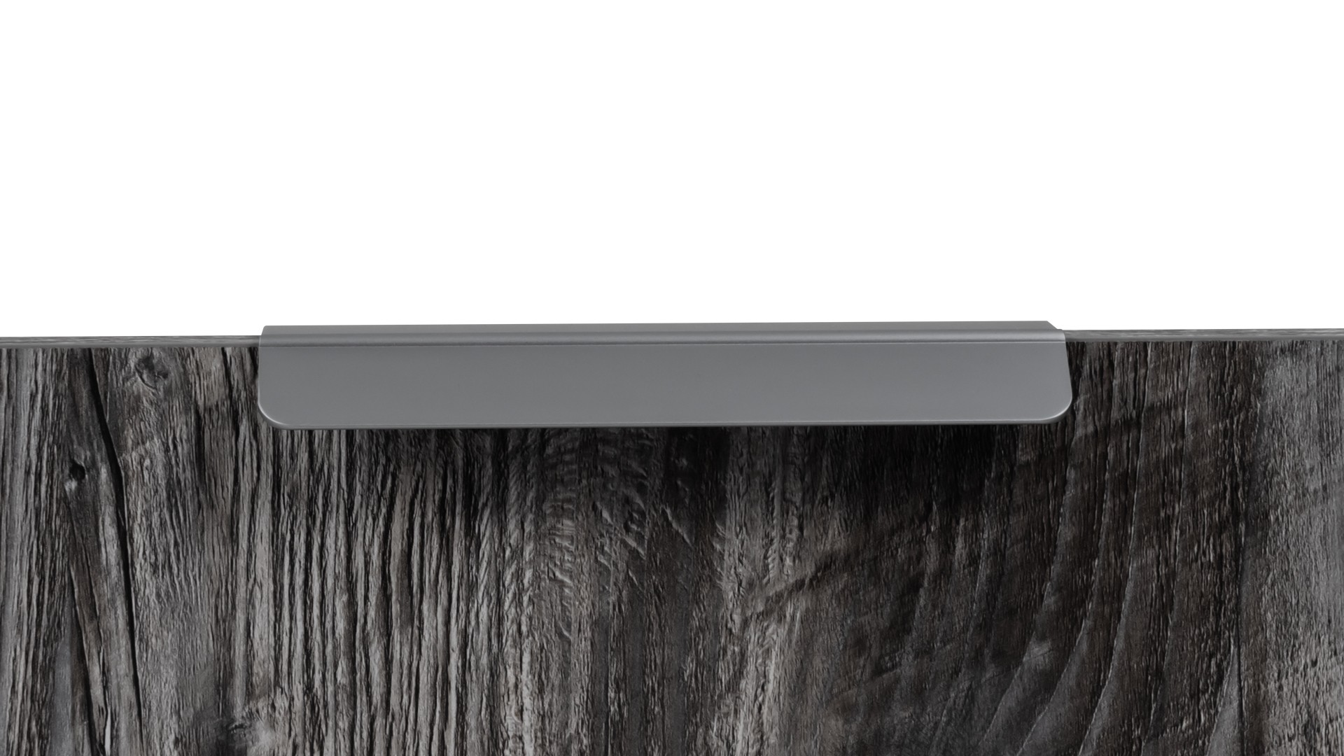 KANT RT013 можно устанавливать не только вертикально, но и горизонтально — для завершённого образа мебельного гарнитура. Модель закрепляется на верхний торец фасада, саморезы (приобретаются отдельно) вкручиваются в отверстия с фаской с задней стороны фасада.