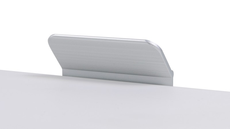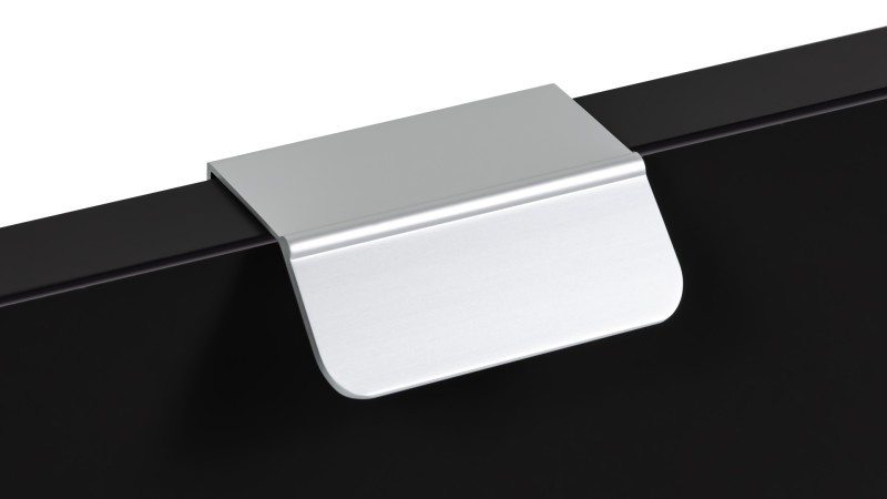 КАНТ RT013 можно устанавливать не только вертикально, но и горизонтально — для завершённого образа мебельного гарнитура. Модель закрепляется на верхний торец фасада, саморезы (приобретаются отдельно) вкручиваются в отверстия с фаской с задней стороны фасада.