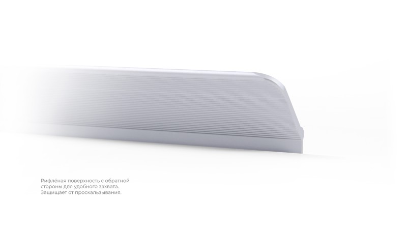 КАНТ RT013 можно устанавливать не только вертикально, но и горизонтально — для завершённого образа мебельного гарнитура. Модель закрепляется на верхний торец фасада, саморезы (приобретаются отдельно) вкручиваются в отверстия с фаской с задней стороны фасада.