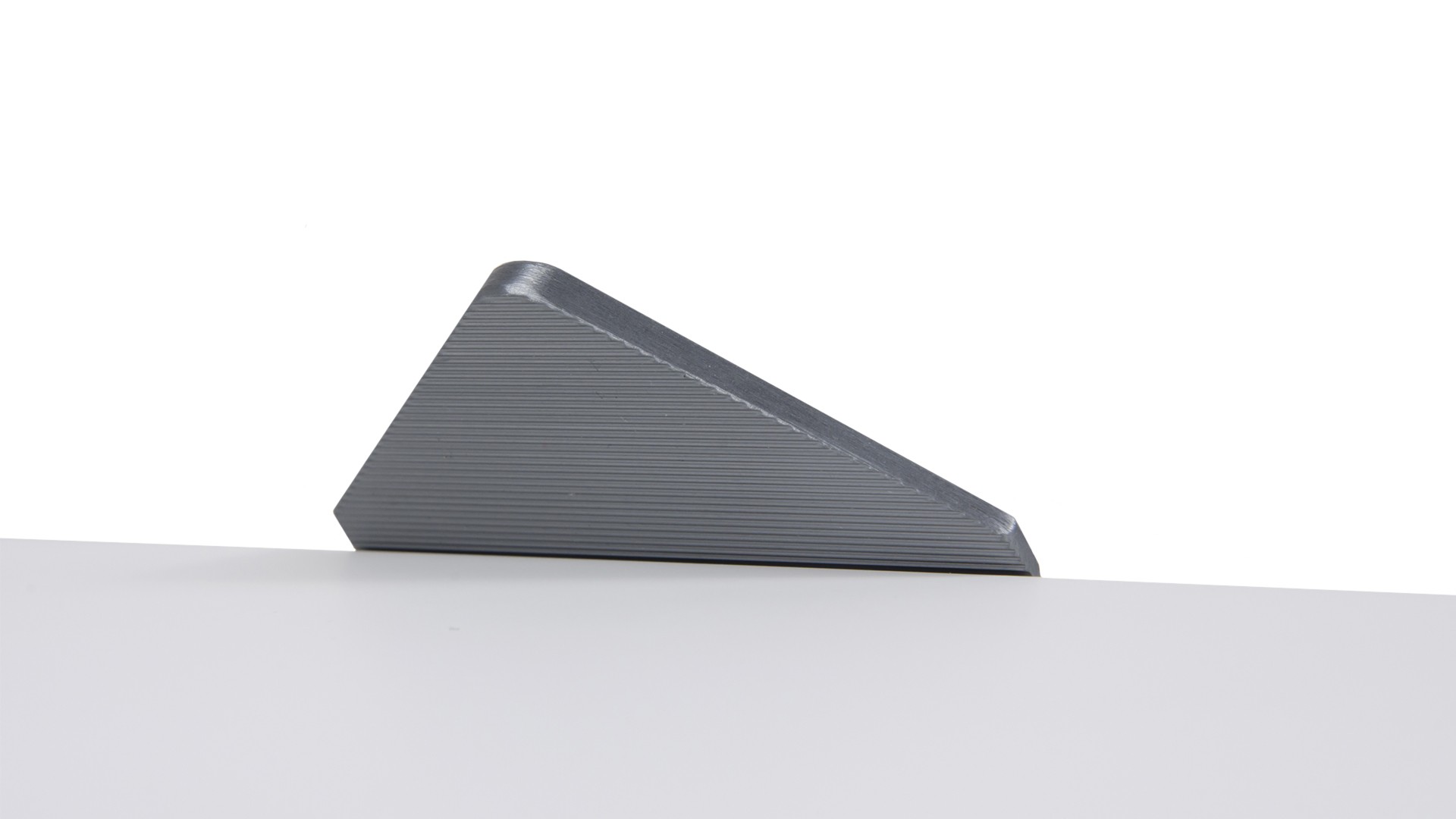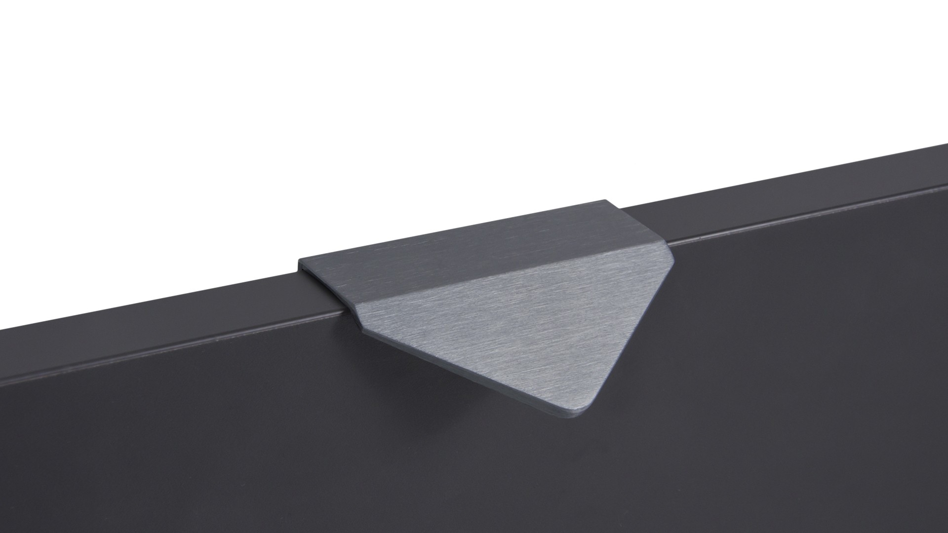 ICON RT014 — торцевая ручка из алюминия, с геометричным выступом в форме треугольника. Для удобства захвата на ручках увеличен отступ язычка, а на его внутренней стороне предусмотрено рифление. Устанавливается наложением, подходит для фасадов толщиной до 18 мм.