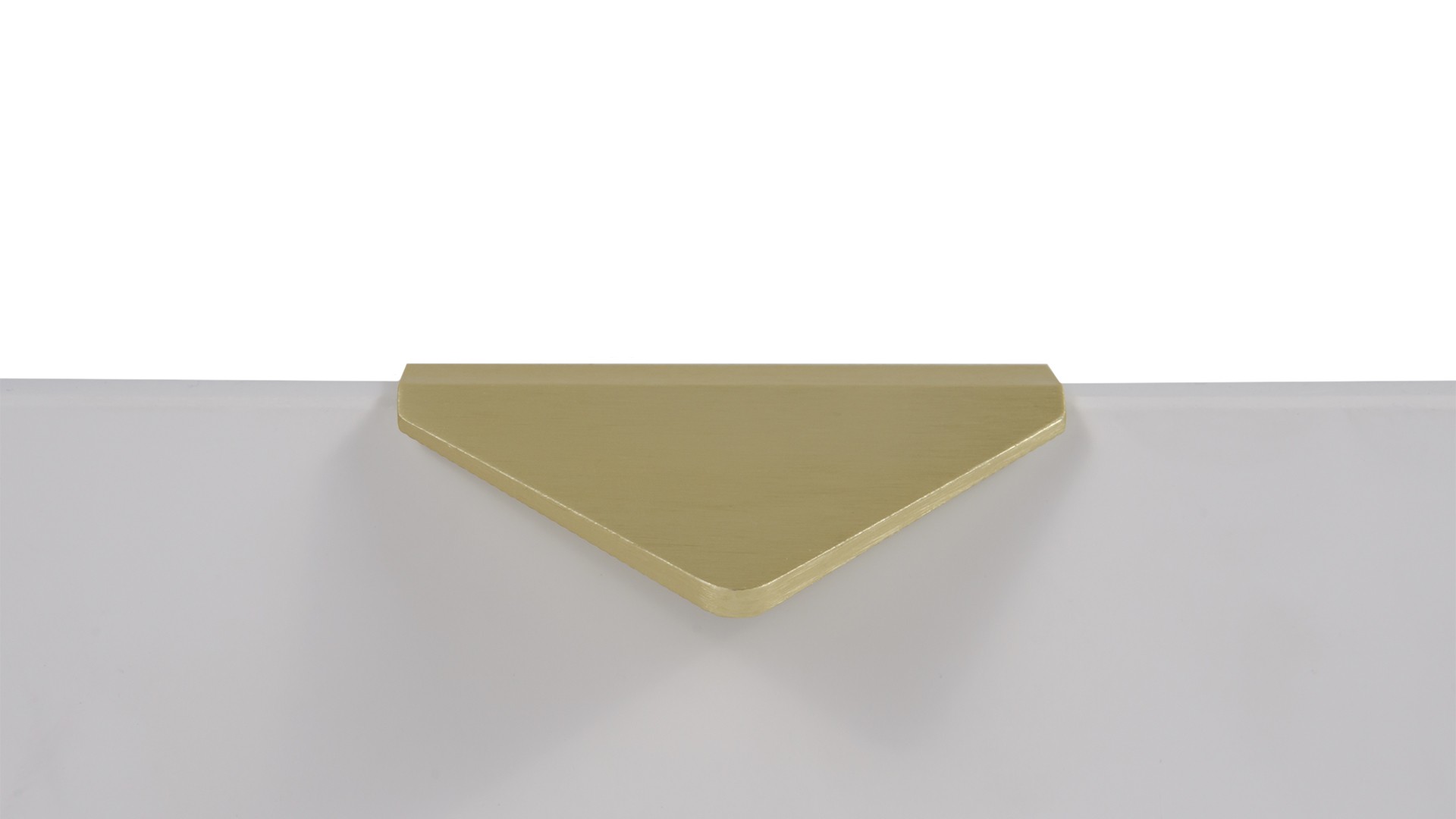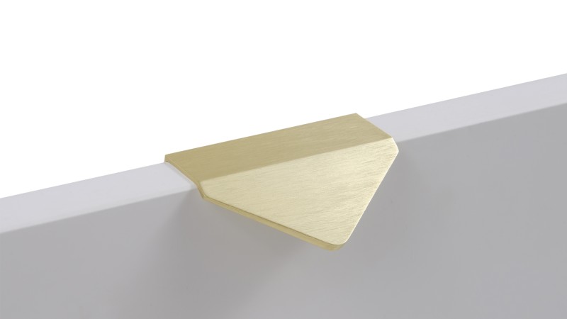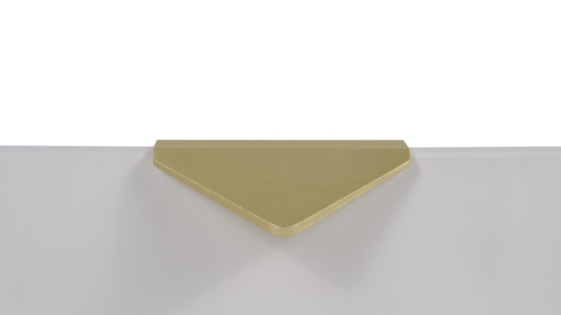 ICON RT014 — торцевая ручка из алюминия, с геометричным выступом в форме треугольника. Для удобства захвата на ручках увеличен отступ язычка, а на его внутренней стороне предусмотрено рифление. Устанавливается наложением, подходит для фасадов толщиной до 18 мм.