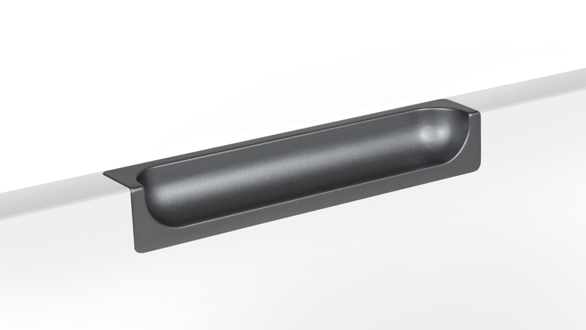 ЕВА RT020 — торцевая мебельная ручка из цинк-алюминия для установки на фасады толщиной от 16 мм врезным способом.