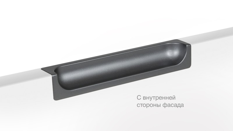 ЕВА RT020 устанавливается на фасады как индивидуальным решением, так и в паре с профильной системой ГОЛА БАЛАНС: главное, заранее предусмотреть наличие необходимого пространства между фасадом с ручкой и столешницей, а также верхними фасадами. Данный зазор необходим для удобного взаимодействия с ручкой.