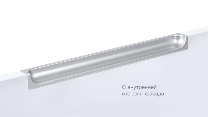 EVA RT020 устанавливается на фасады как индивидуальным решением, так и в паре с профильной системой GOLA BALANCE: главное, заранее предусмотреть наличие необходимого пространства между фасадом с ручкой и столешницей, а также верхними фасадами. Данный зазор необходим для удобного взаимодействия с ручкой.