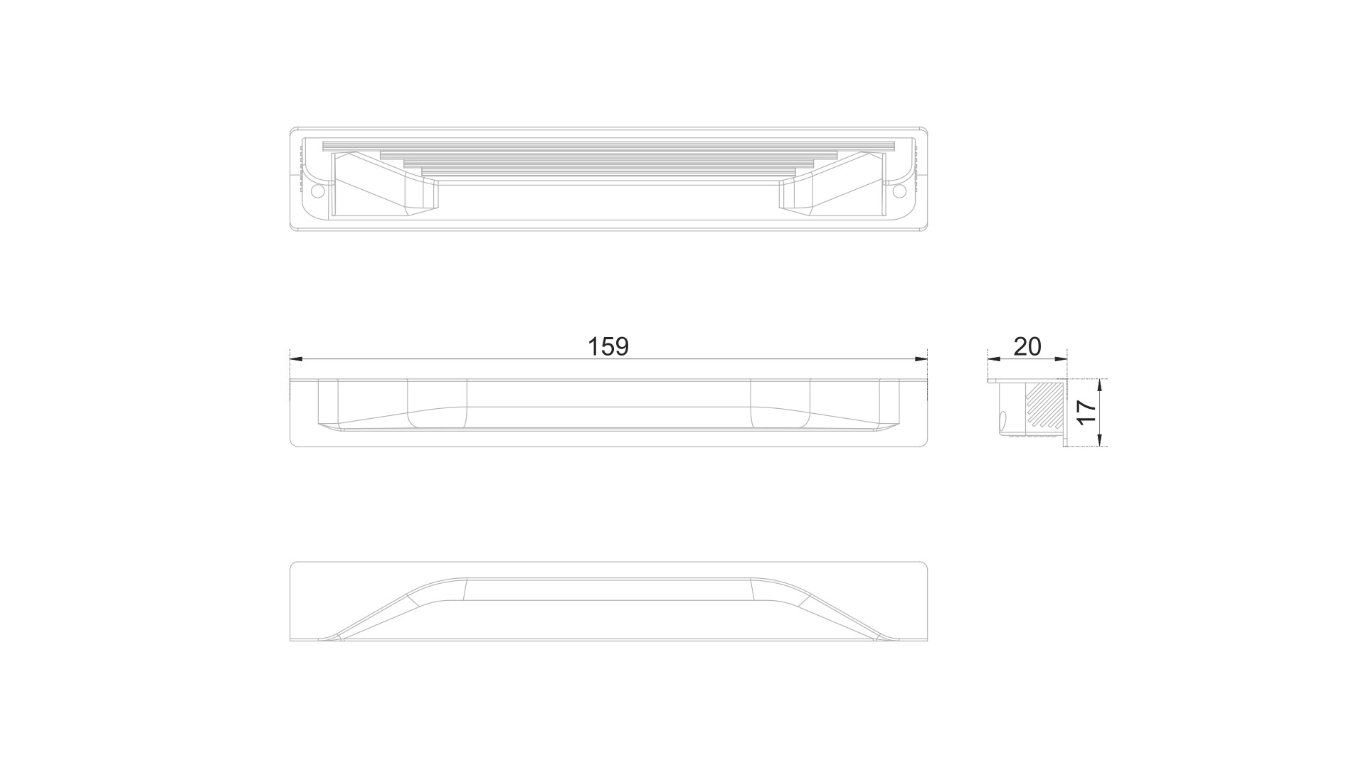 ADAM RT021 — торцевая мебельная ручка из цинк-алюминия для установки на фасады толщиной от 16 мм врезным способом.
