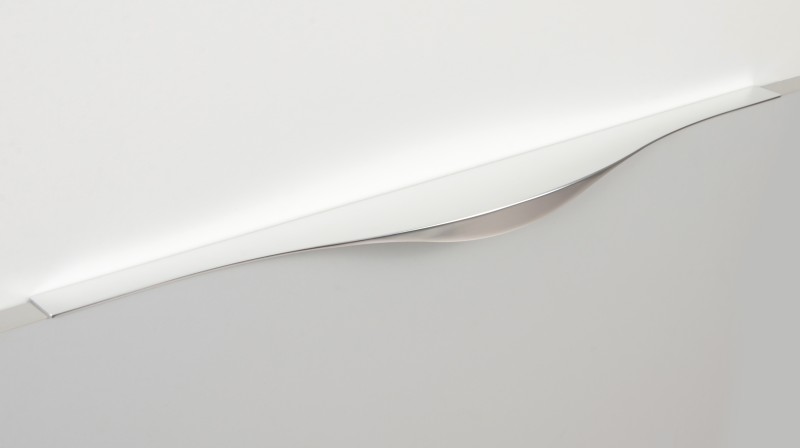 Ручку можно установить двумя способами — «в размер» фасада или по центру как большой «язычок» — оба варианта допустимы с точки зрения дизайна и эргономики.