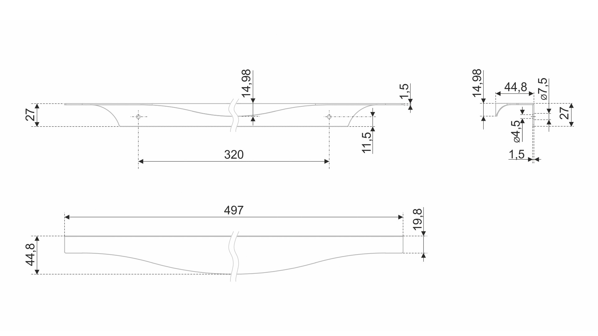 Модель крепится на фасады толщиной 16-18 мм методом наложения и фиксируется при помощи саморезов. Саморезы не входят в комплект и приобретаются отдельно. Размер саморезов необходимо подобрать самостоятельно, исходя из толщины фасада, на который будет устанавливаться ручка.