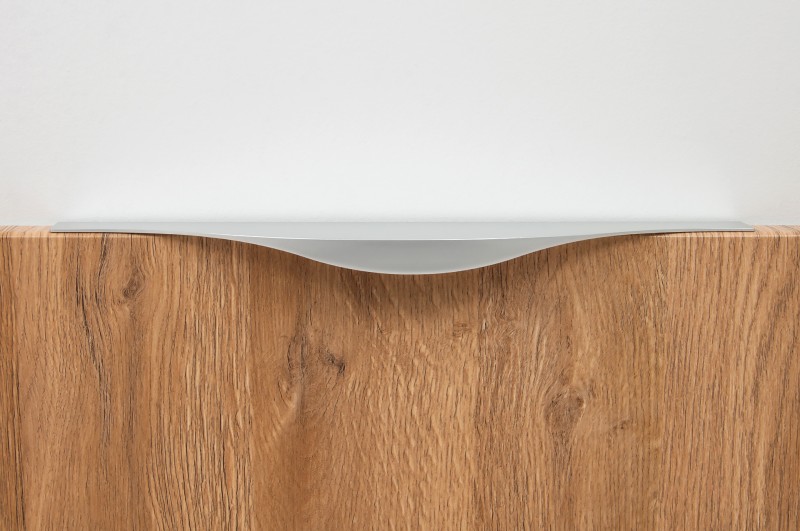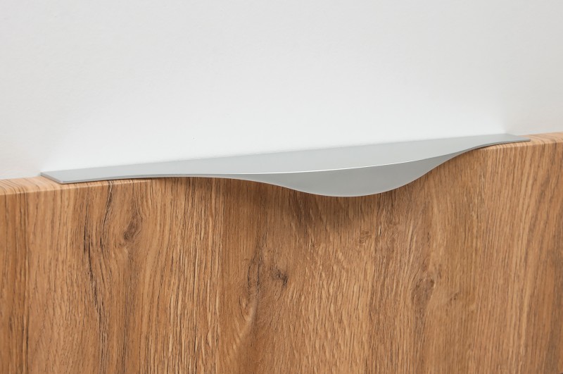 Ручку можно установить двумя способами — «в размер» фасада или по центру как большой «язычок» — оба варианта допустимы с точки зрения дизайна и эргономики.