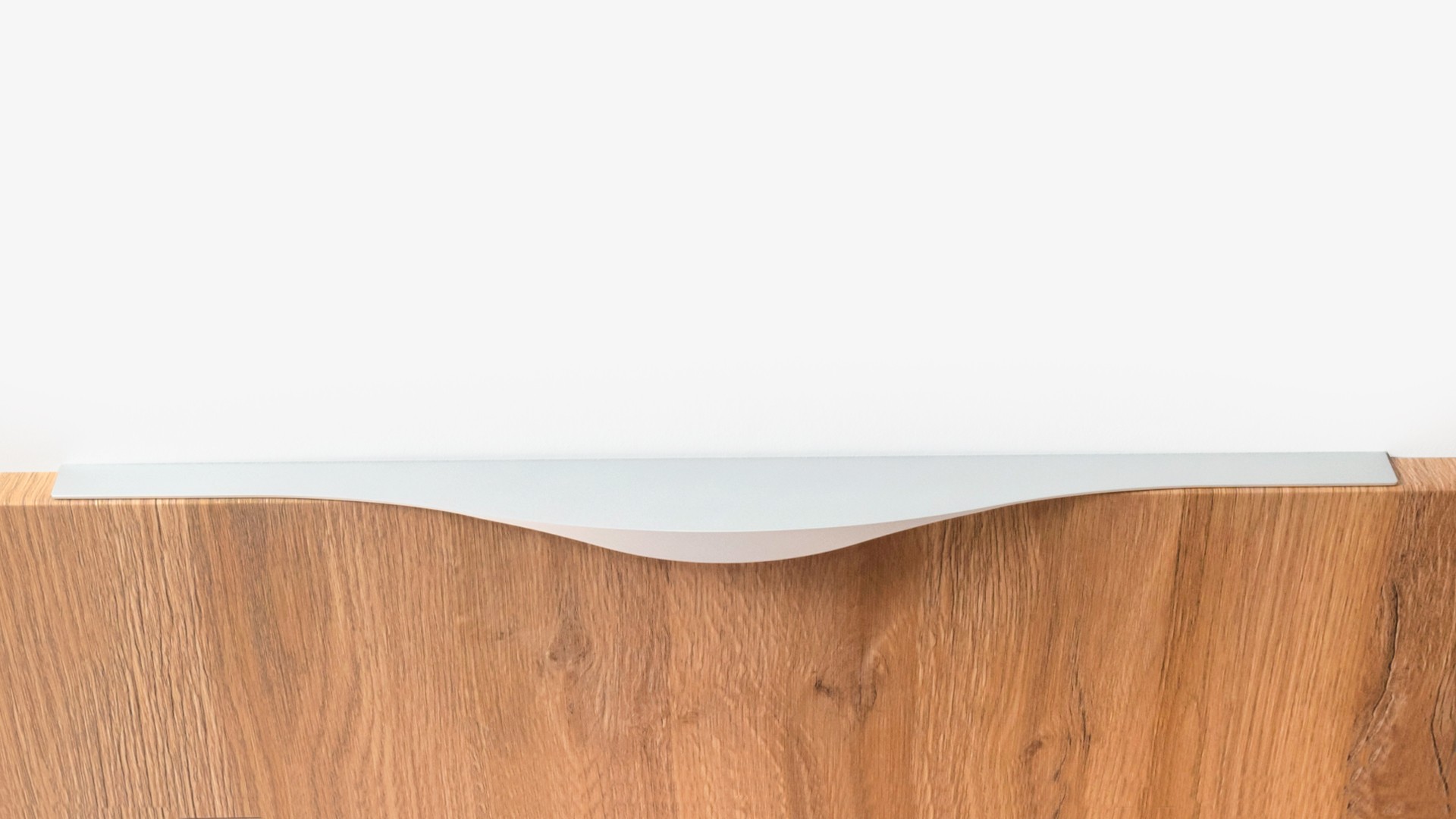 Ручку можно установить двумя способами — «в размер» фасада или по центру как большой «язычок» — оба варианта допустимы с точки зрения дизайна и эргономики.
