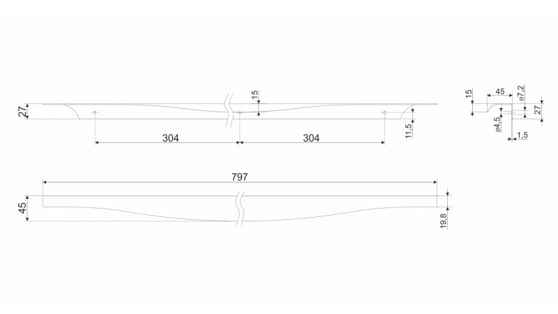 Модель крепится на фасады толщиной 16-18 мм методом наложения и фиксируется при помощи саморезов. Саморезы не входят в комплект и приобретаются отдельно. Размер саморезов необходимо подобрать самостоятельно, исходя из толщины фасада, на который будет устанавливаться ручка.
