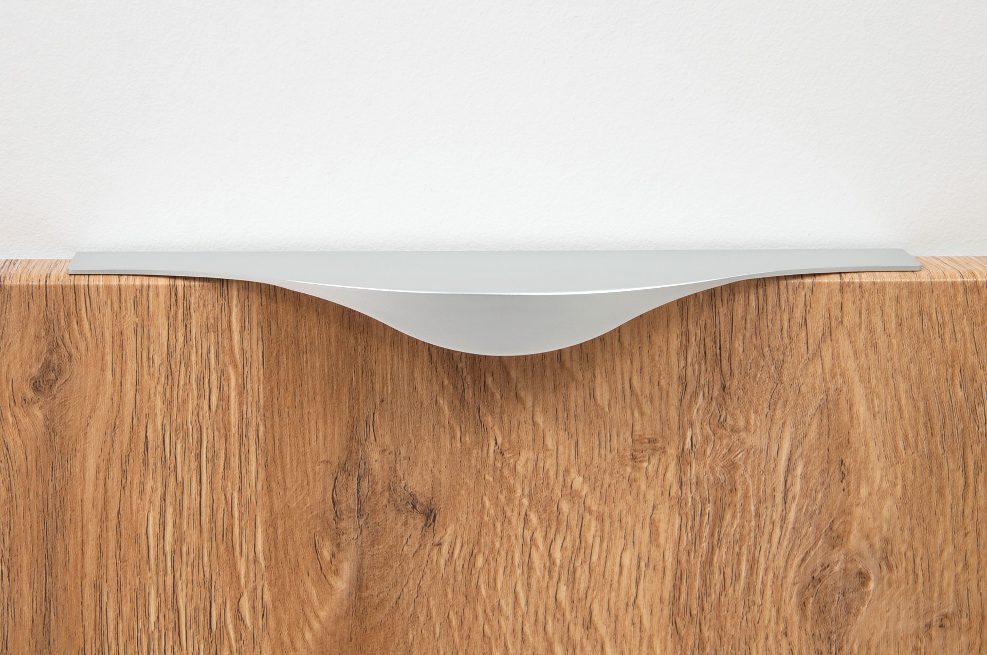 Ручку можно установить двумя способами — «в размер» фасада или по центру как большой «язычок» — оба варианта допустимы с точки зрения дизайна и эргономики.