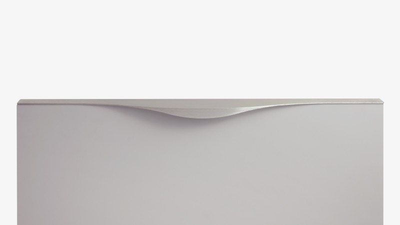 Ручку можно установить двумя способами — «в размер» фасада или по центру как большой «язычок» — оба варианта допустимы с точки зрения дизайна и эргономики.