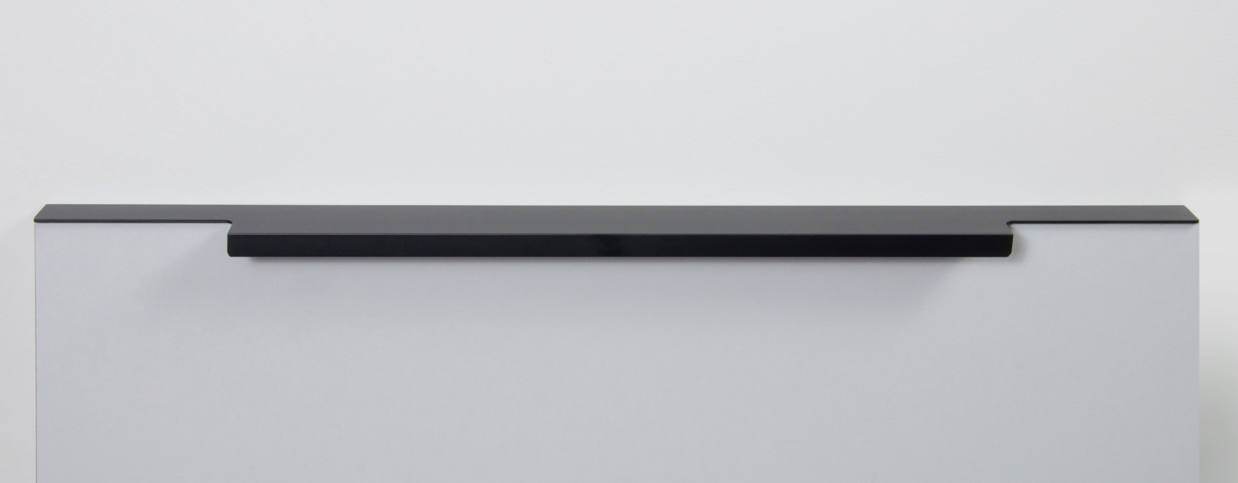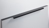 Ручка имеет богатую палитру цветовых решений и разнообразие длин. В зависимости от длины, модель допускает размещение двумя способами — «в размер» фасада и по центру широких фасадов (как большой «язычок»).