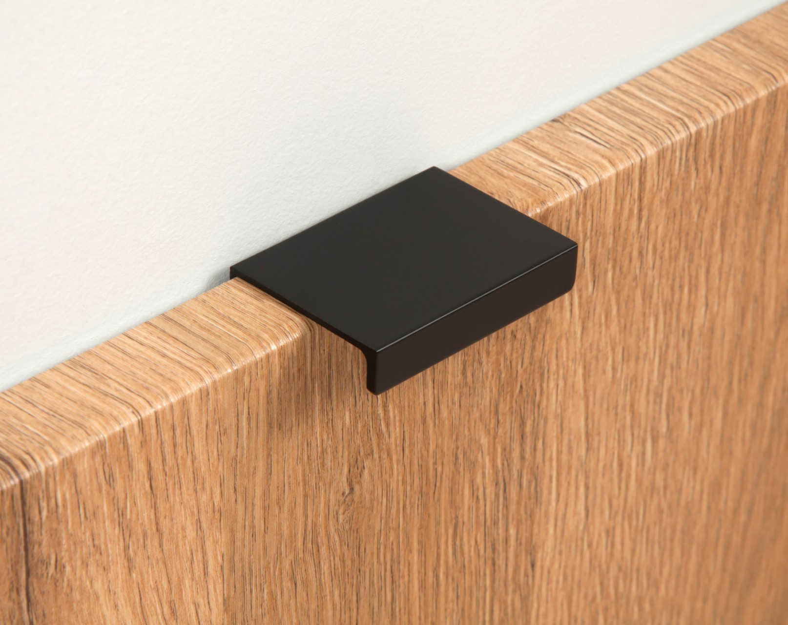 Ручка имеет богатую палитру цветовых решений и разнообразие длин. В зависимости от длины, модель допускает размещение двумя способами — «в размер» фасада и по центру широких фасадов (как большой «язычок»).