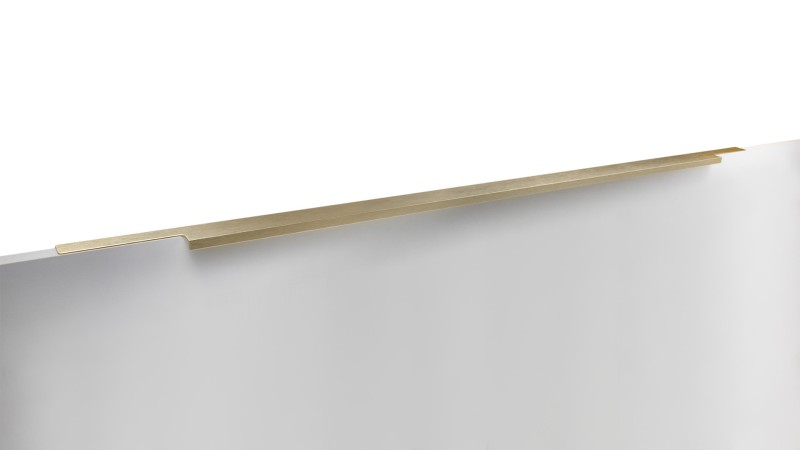 Ручка имеет богатую палитру цветовых решений и разнообразие длин. В зависимости от длины, модель допускает размещение двумя способами — «в размер» фасада и по центру широких фасадов (как большой «язычок»).