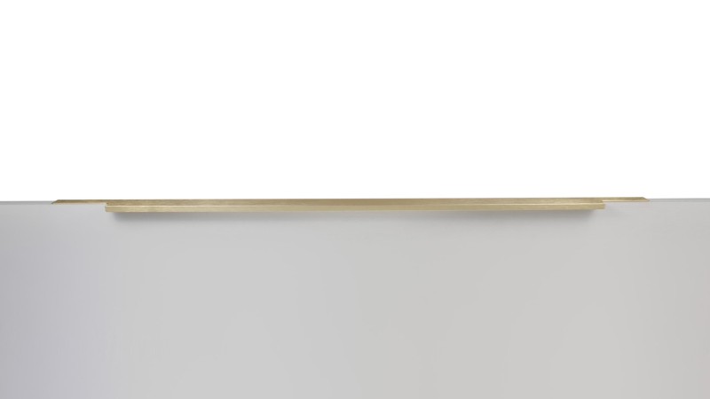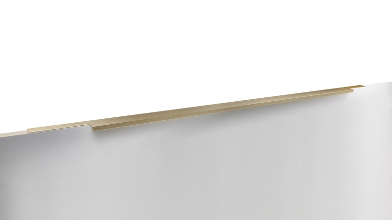 Ручка имеет богатую палитру цветовых решений и разнообразие длин. В зависимости от длины, модель допускает размещение двумя способами — «в размер» фасада и по центру широких фасадов (как большой «язычок»).
