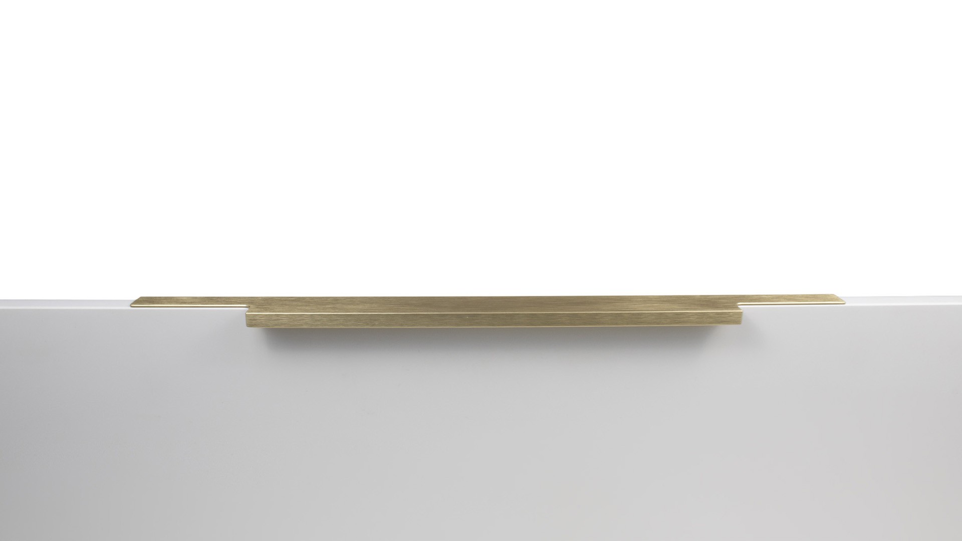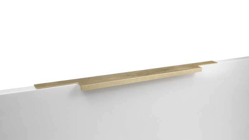 Ручка имеет богатую палитру цветовых решений и разнообразие длин. В зависимости от длины, модель допускает размещение двумя способами — «в размер» фасада и по центру широких фасадов (как большой «язычок»).