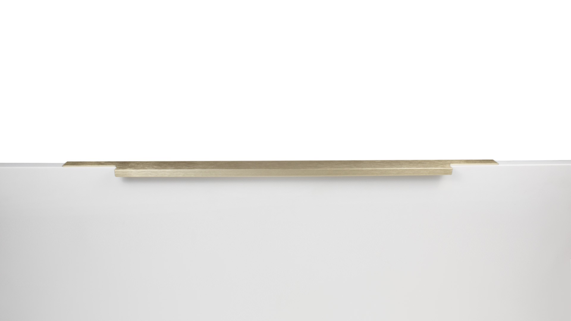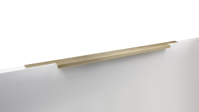 Ручка имеет богатую палитру цветовых решений и разнообразие длин. В зависимости от длины, модель допускает размещение двумя способами — «в размер» фасада и по центру широких фасадов (как большой «язычок»).