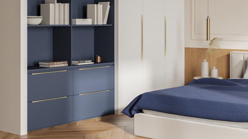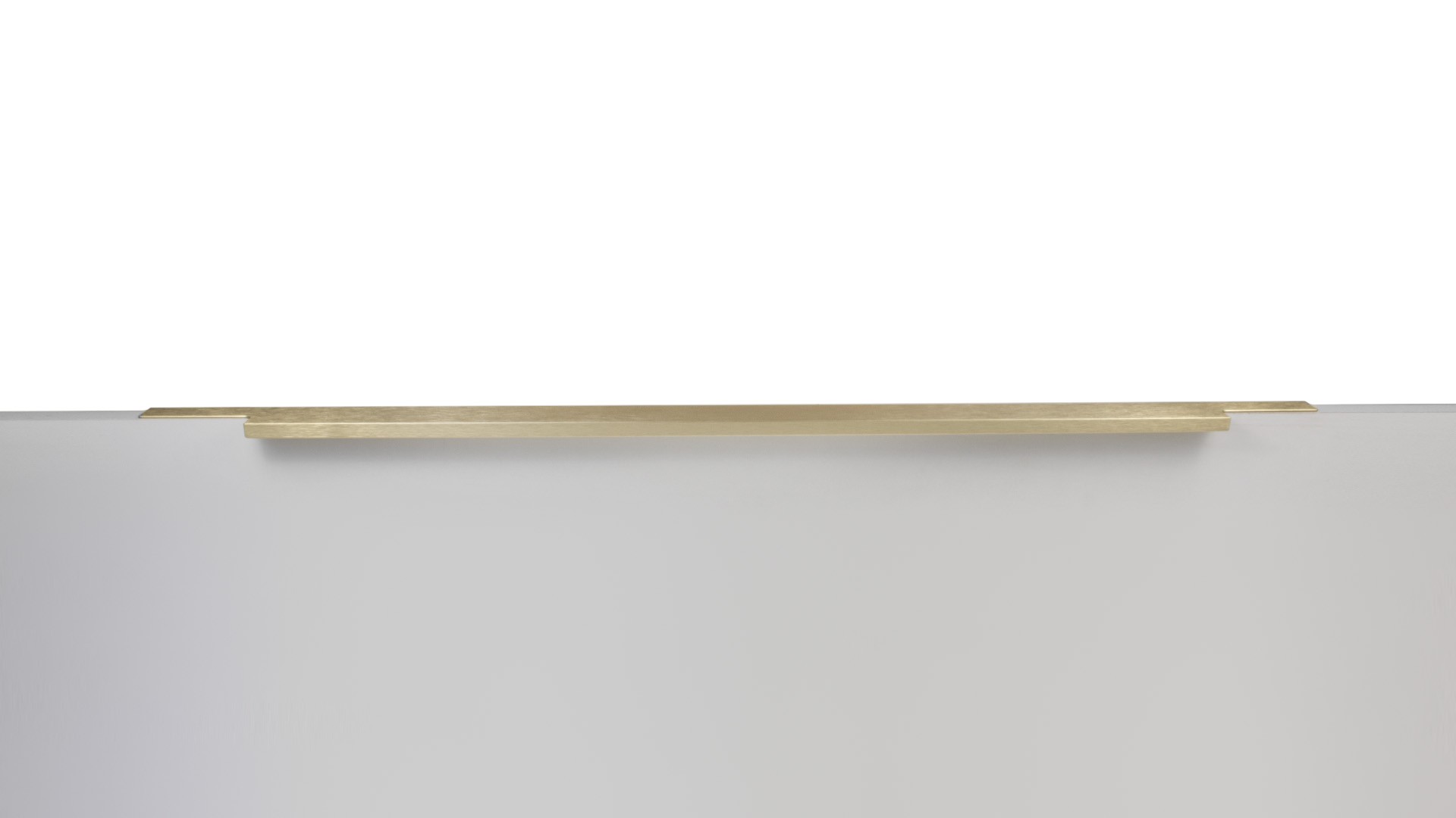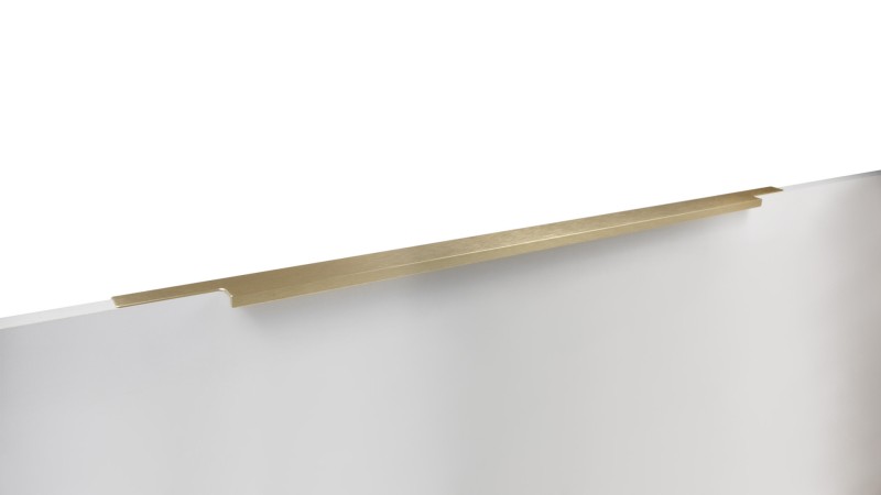 Ручка имеет богатую палитру цветовых решений и разнообразие длин. В зависимости от длины, модель допускает размещение двумя способами — «в размер» фасада и по центру широких фасадов (как большой «язычок»).