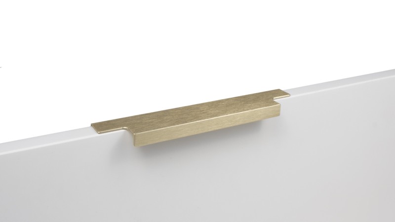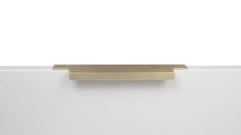 Ручка имеет богатую палитру цветовых решений и разнообразие длин. В зависимости от длины, модель допускает размещение двумя способами — «в размер» фасада и по центру широких фасадов (как большой «язычок»).
