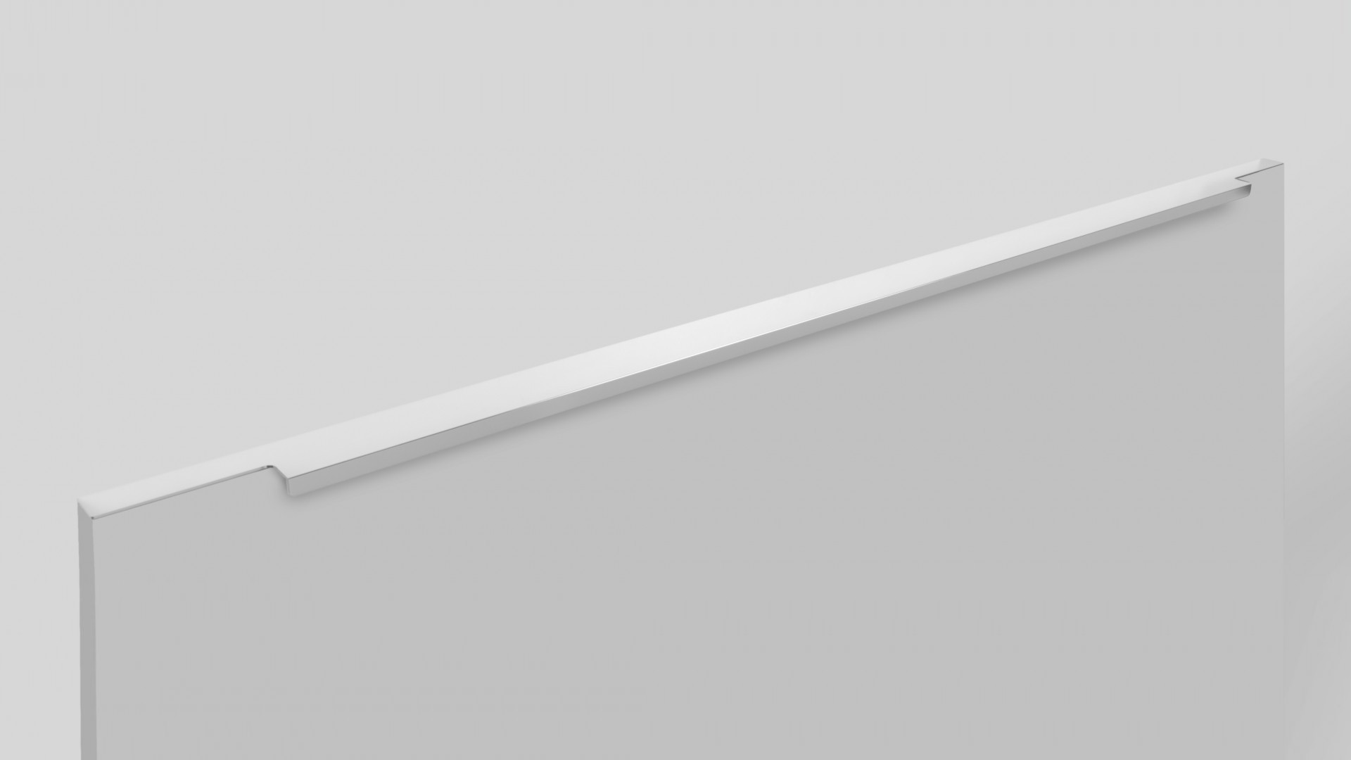 Ручка имеет богатую палитру цветовых решений и разнообразие длин. В зависимости от длины, модель допускает размещение двумя способами — «в размер» фасада и по центру широких фасадов (как большой «язычок»).