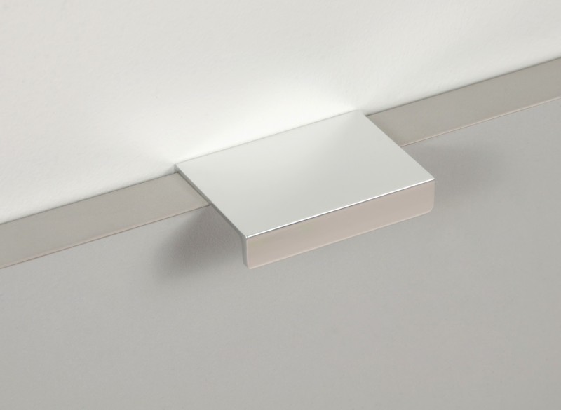 Ручка имеет богатую палитру цветовых решений и разнообразие длин. В зависимости от длины, модель допускает размещение двумя способами — «в размер» фасада и по центру широких фасадов (как большой «язычок»).