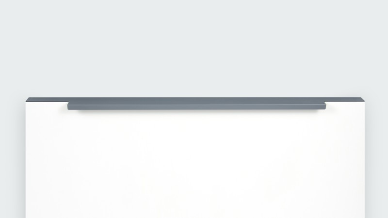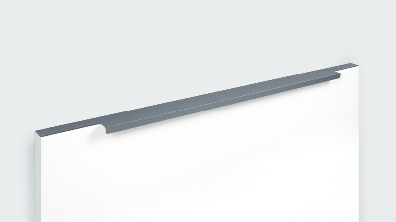 Ручка имеет богатую палитру цветовых решений и разнообразие длин. В зависимости от длины, модель допускает размещение двумя способами — «в размер» фасада и по центру широких фасадов (как большой «язычок»).
