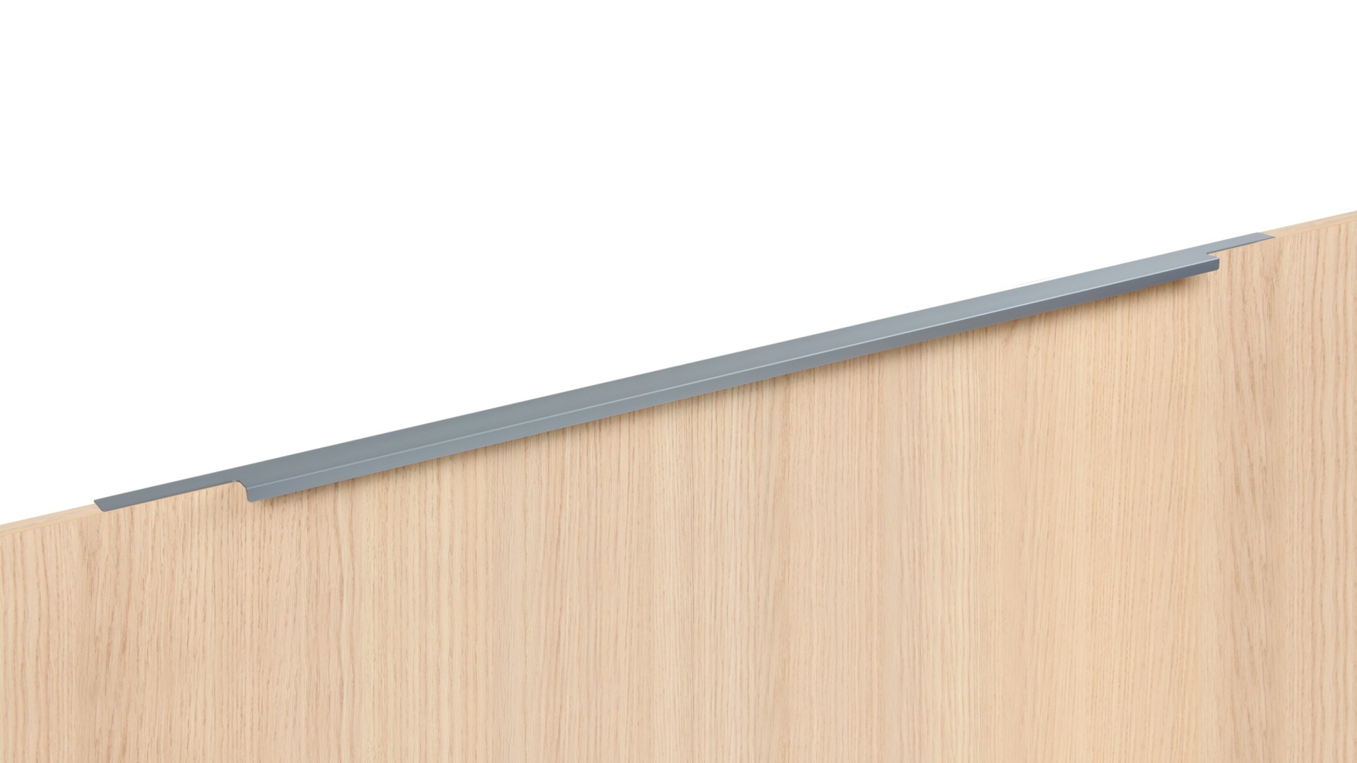 Ручка имеет богатую палитру цветовых решений и разнообразие длин. В зависимости от длины, модель допускает размещение двумя способами — «в размер» фасада и по центру широких фасадов (как большой «язычок»).