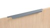 Ручка имеет богатую палитру цветовых решений и разнообразие длин. В зависимости от длины, модель допускает размещение двумя способами — «в размер» фасада и по центру широких фасадов (как большой «язычок»).