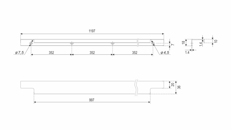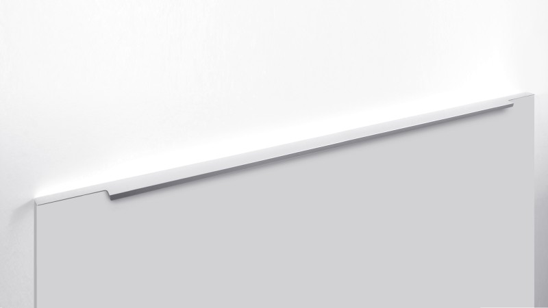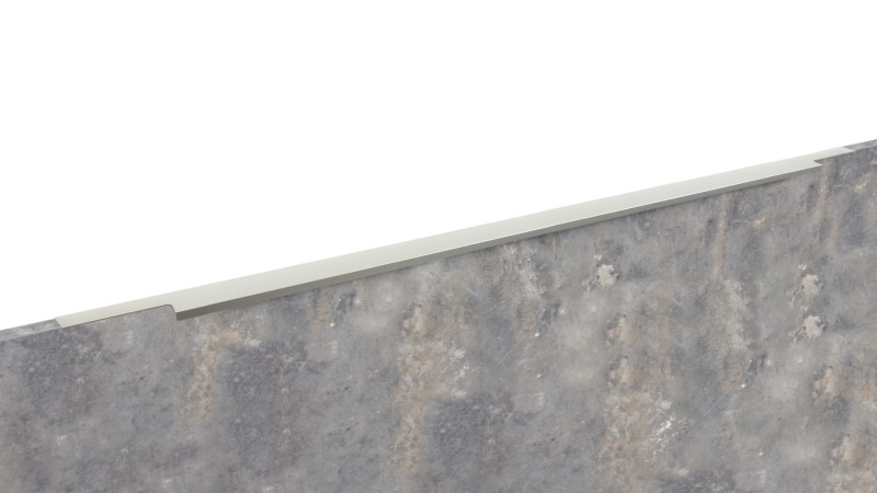 Ручка имеет богатую палитру цветовых решений и разнообразие длин. В зависимости от длины, модель допускает размещение двумя способами — «в размер» фасада и по центру широких фасадов (как большой «язычок»).