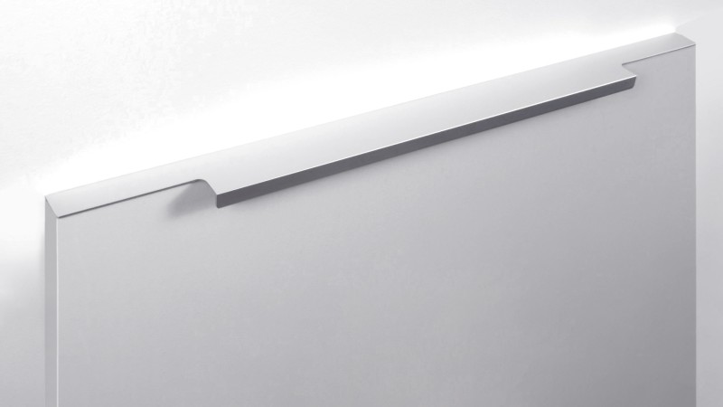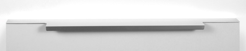 Ручка имеет богатую палитру цветовых решений и разнообразие длин. В зависимости от длины, модель допускает размещение двумя способами — «в размер» фасада и по центру широких фасадов (как большой «язычок»).