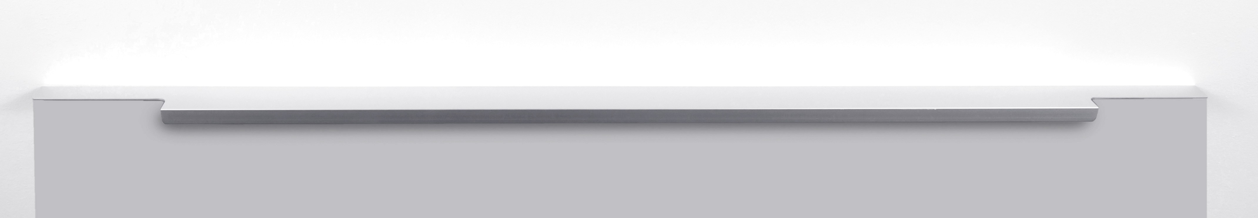 Ручка имеет богатую палитру цветовых решений и разнообразие длин. В зависимости от длины, модель допускает размещение двумя способами — «в размер» фасада и по центру широких фасадов (как большой «язычок»).