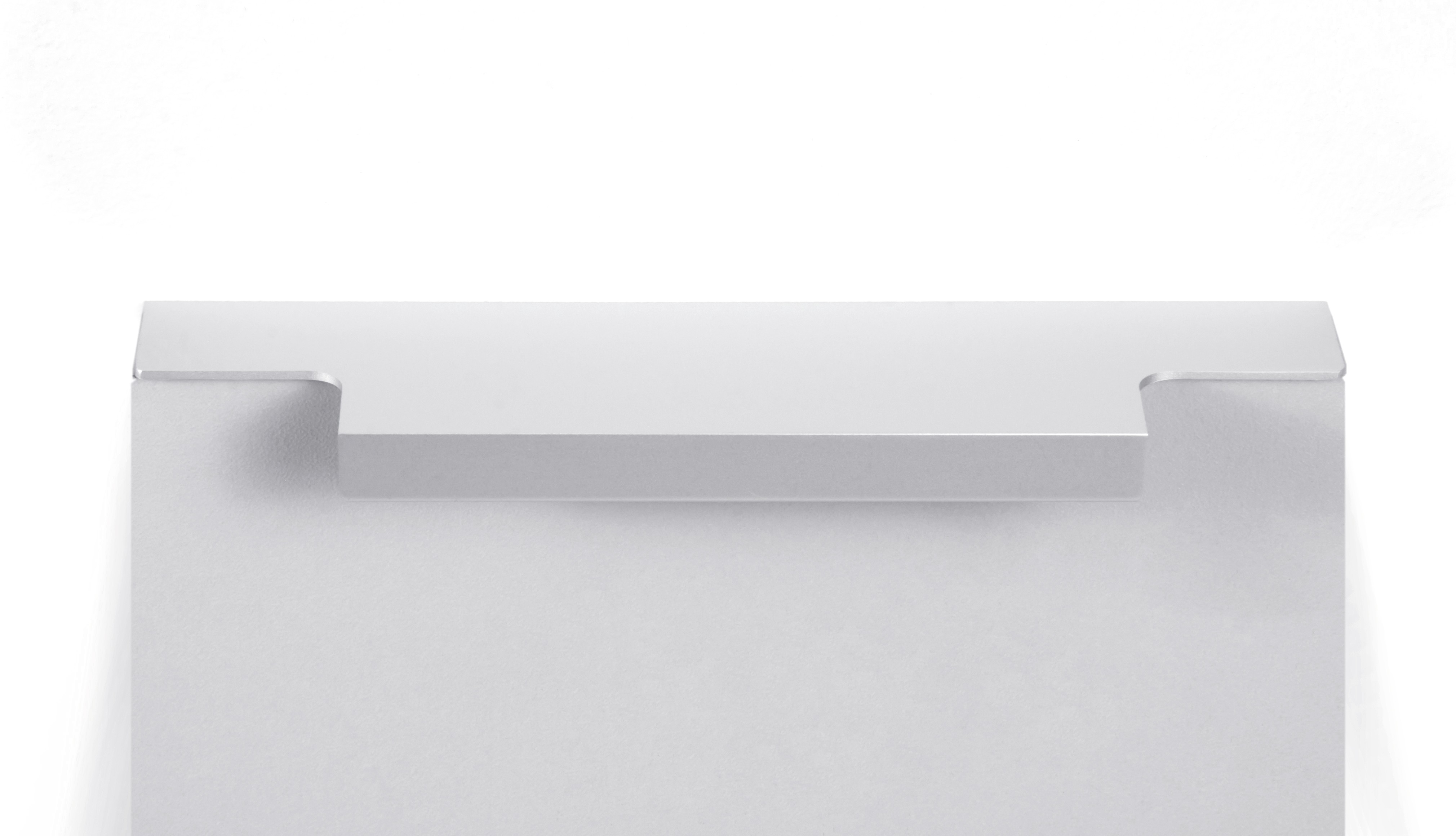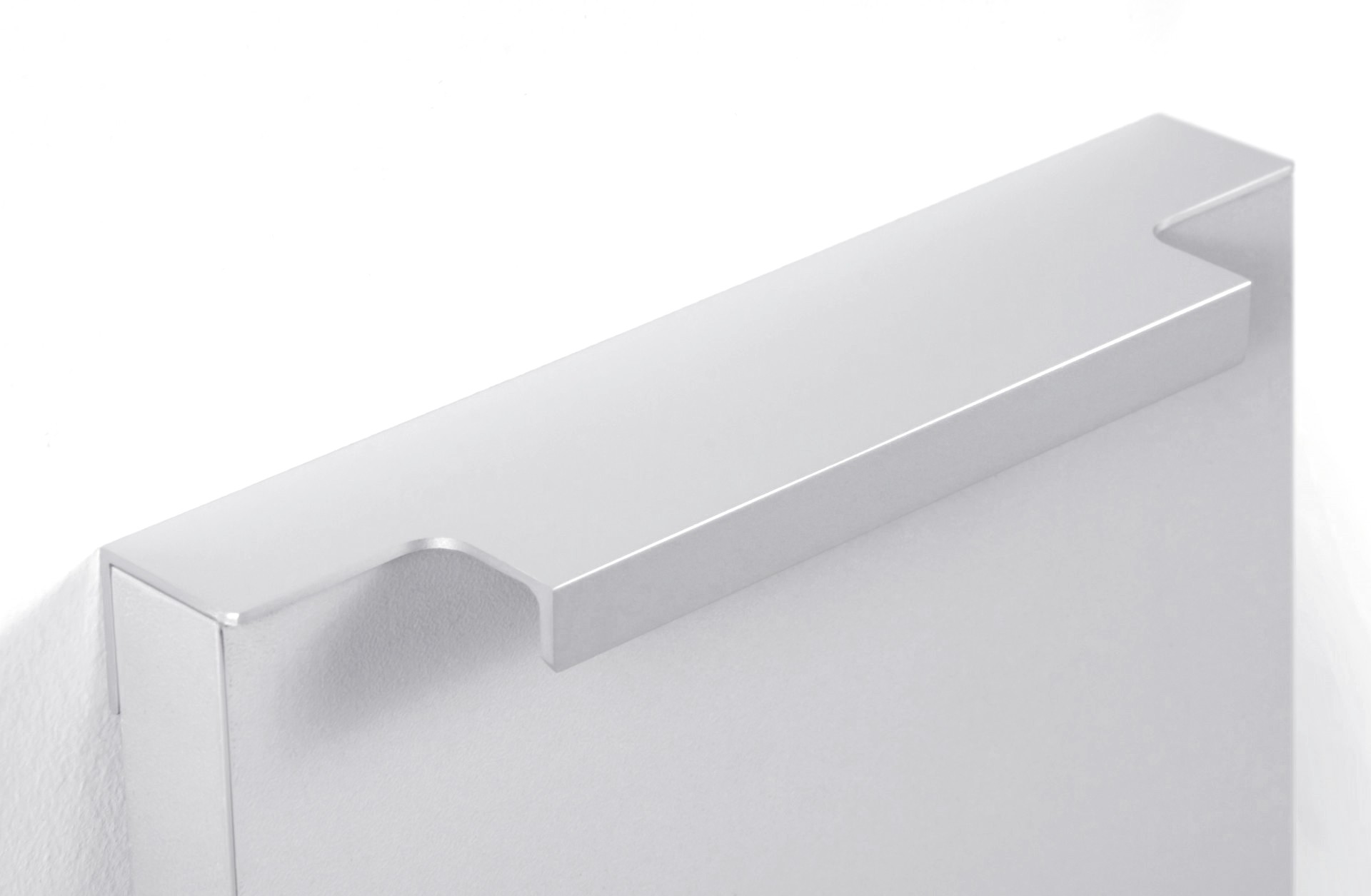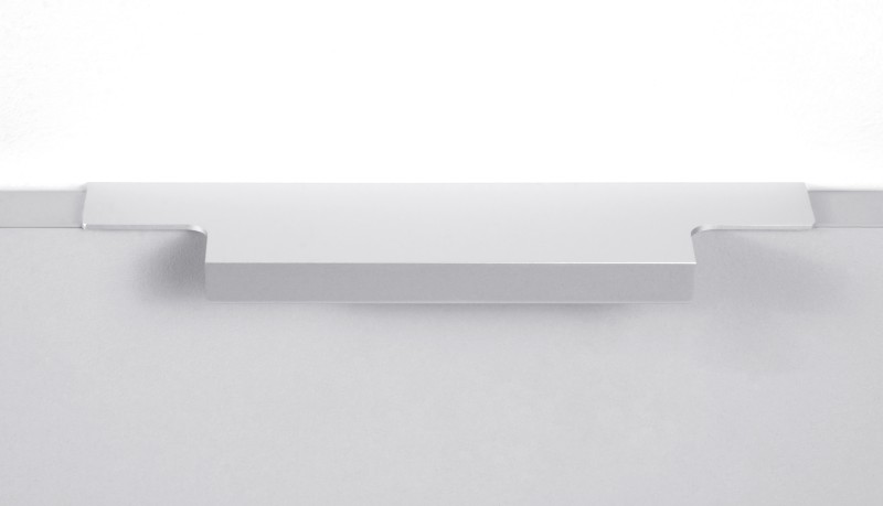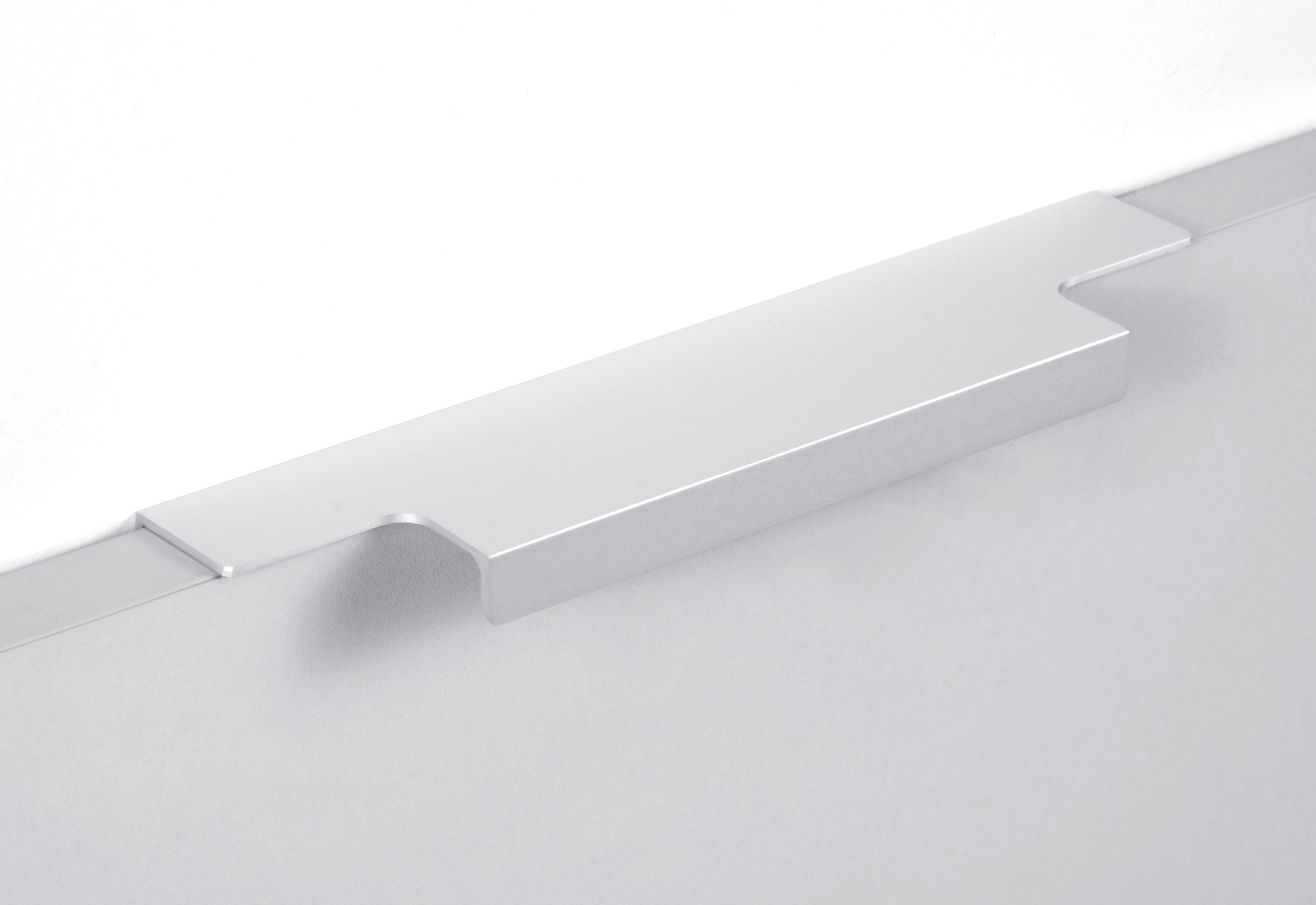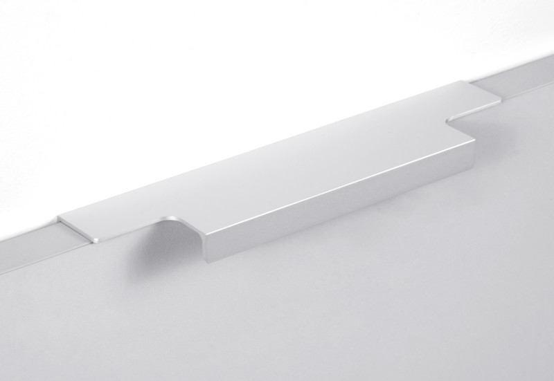 Ручка имеет богатую палитру цветовых решений и разнообразие длин. В зависимости от длины, модель допускает размещение двумя способами — «в размер» фасада и по центру широких фасадов (как большой «язычок»).