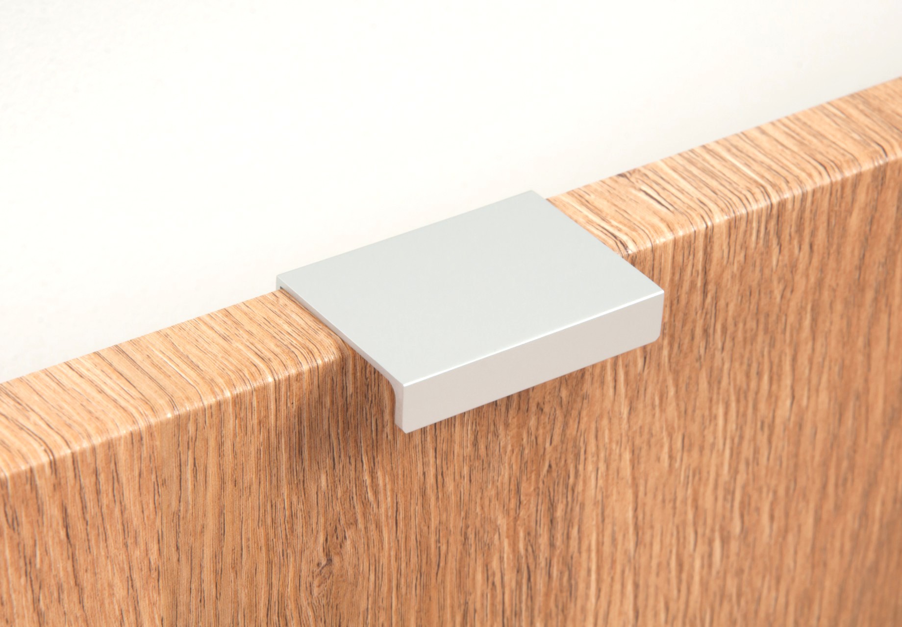 Ручка имеет богатую палитру цветовых решений и разнообразие длин. В зависимости от длины, модель допускает размещение двумя способами — «в размер» фасада и по центру широких фасадов (как большой «язычок»).
