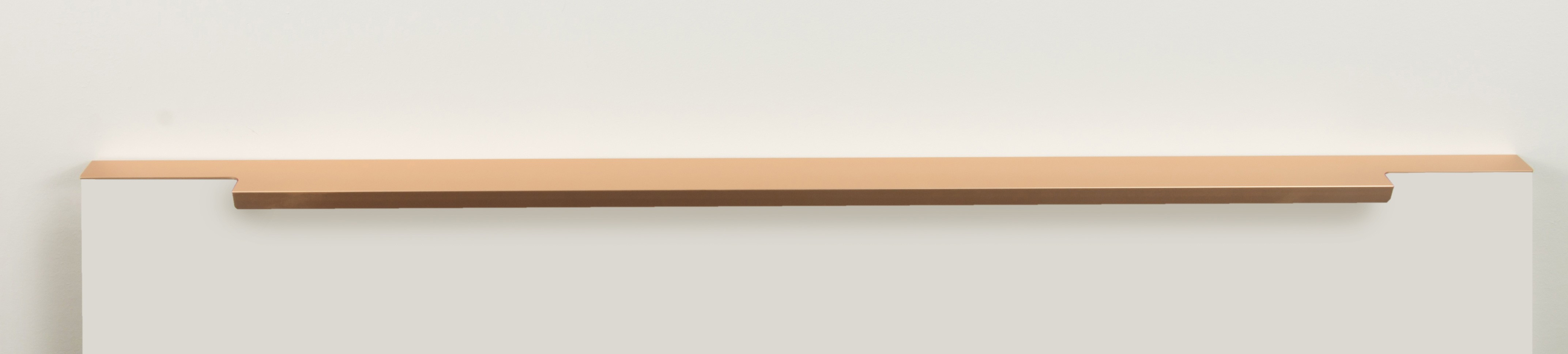 Ручка имеет богатую палитру цветовых решений и разнообразие длин. В зависимости от длины, модель допускает размещение двумя способами — «в размер» фасада и по центру широких фасадов (как большой «язычок»).