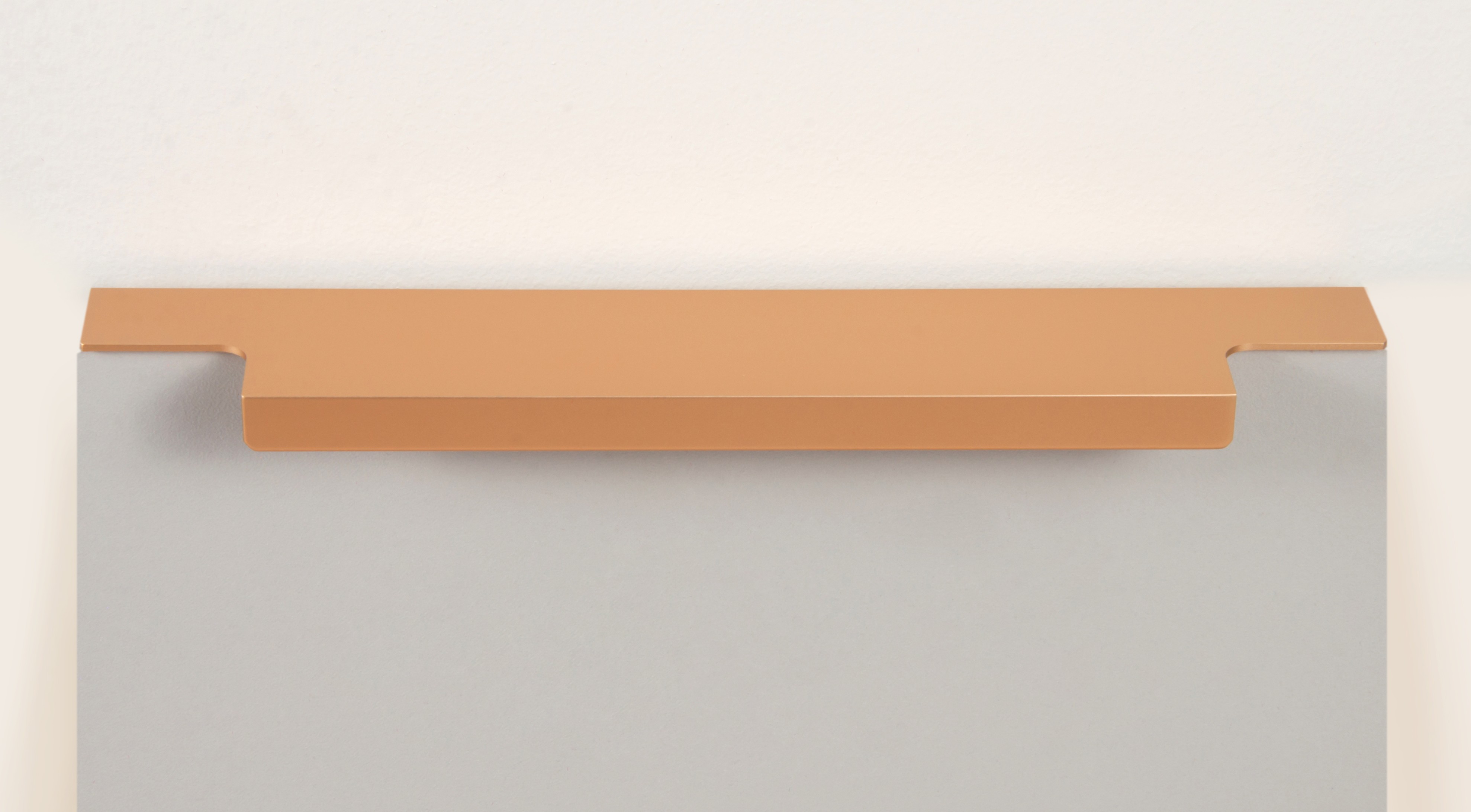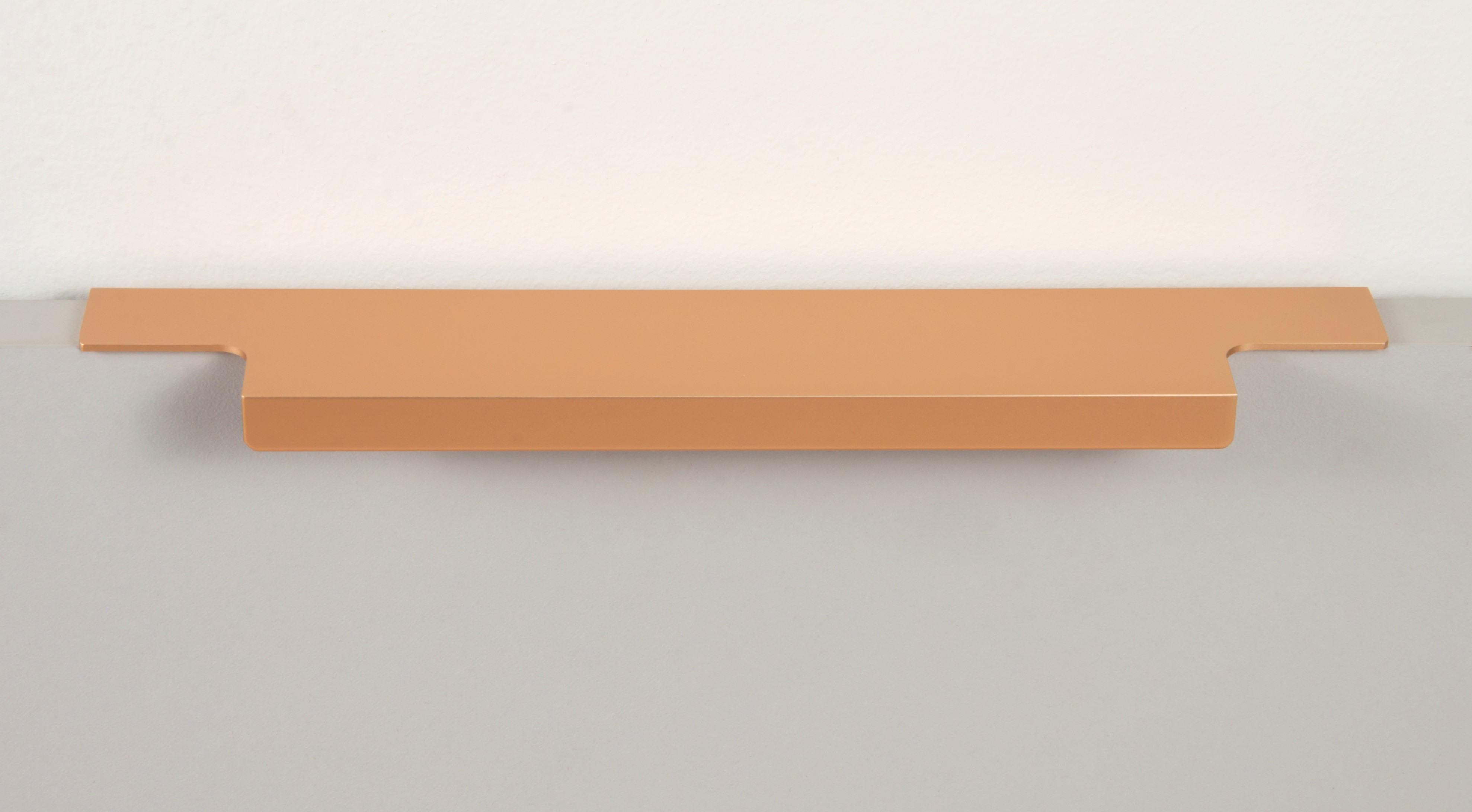 Ручка имеет богатую палитру цветовых решений и разнообразие длин. В зависимости от длины, модель допускает размещение двумя способами — «в размер» фасада и по центру широких фасадов (как большой «язычок»).