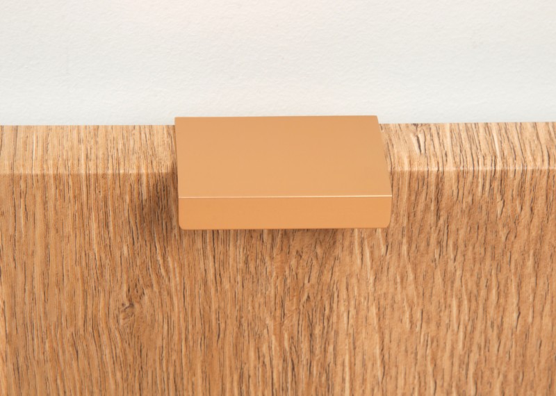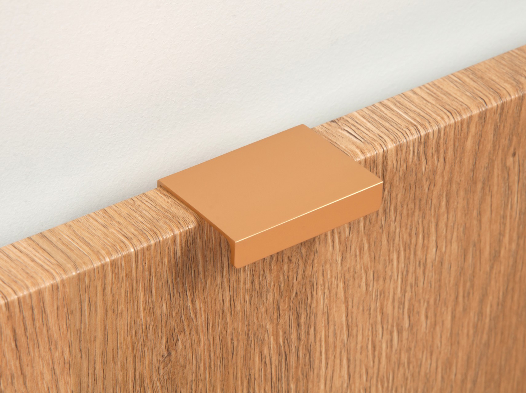 Ручка имеет богатую палитру цветовых решений и разнообразие длин. В зависимости от длины, модель допускает размещение двумя способами — «в размер» фасада и по центру широких фасадов (как большой «язычок»).