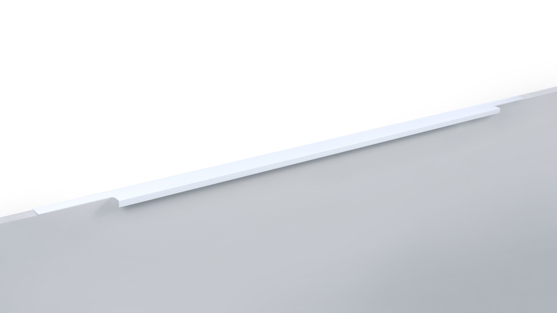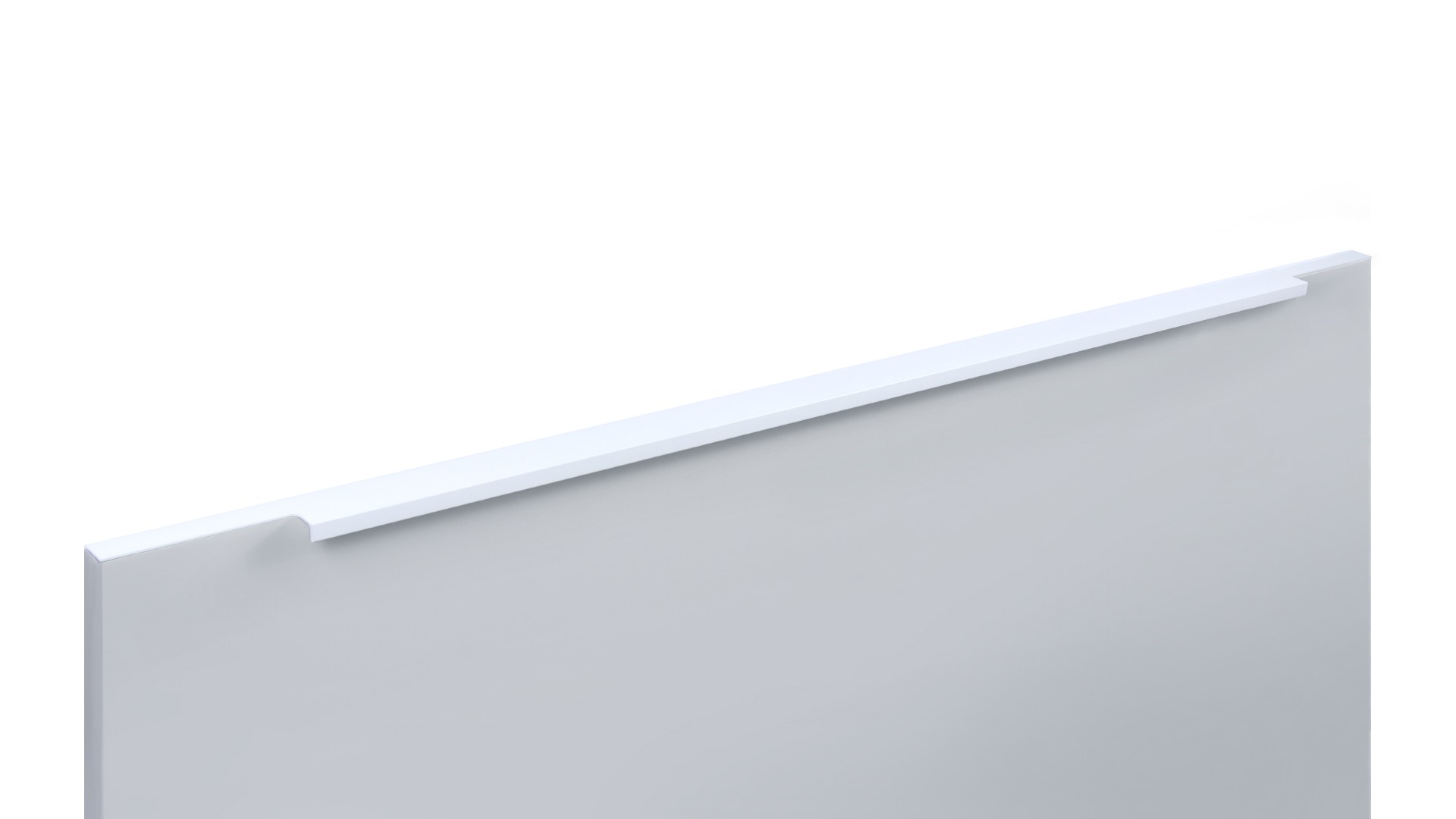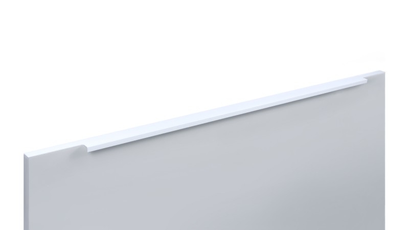 Ручка имеет богатую палитру цветовых решений и разнообразие длин. В зависимости от длины, модель допускает размещение двумя способами — «в размер» фасада и по центру широких фасадов (как большой «язычок»).