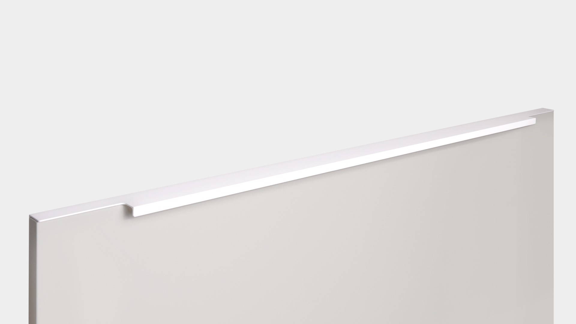 Ручка имеет богатую палитру цветовых решений и разнообразие длин. В зависимости от длины, модель допускает размещение двумя способами — «в размер» фасада и по центру широких фасадов (как большой «язычок»).