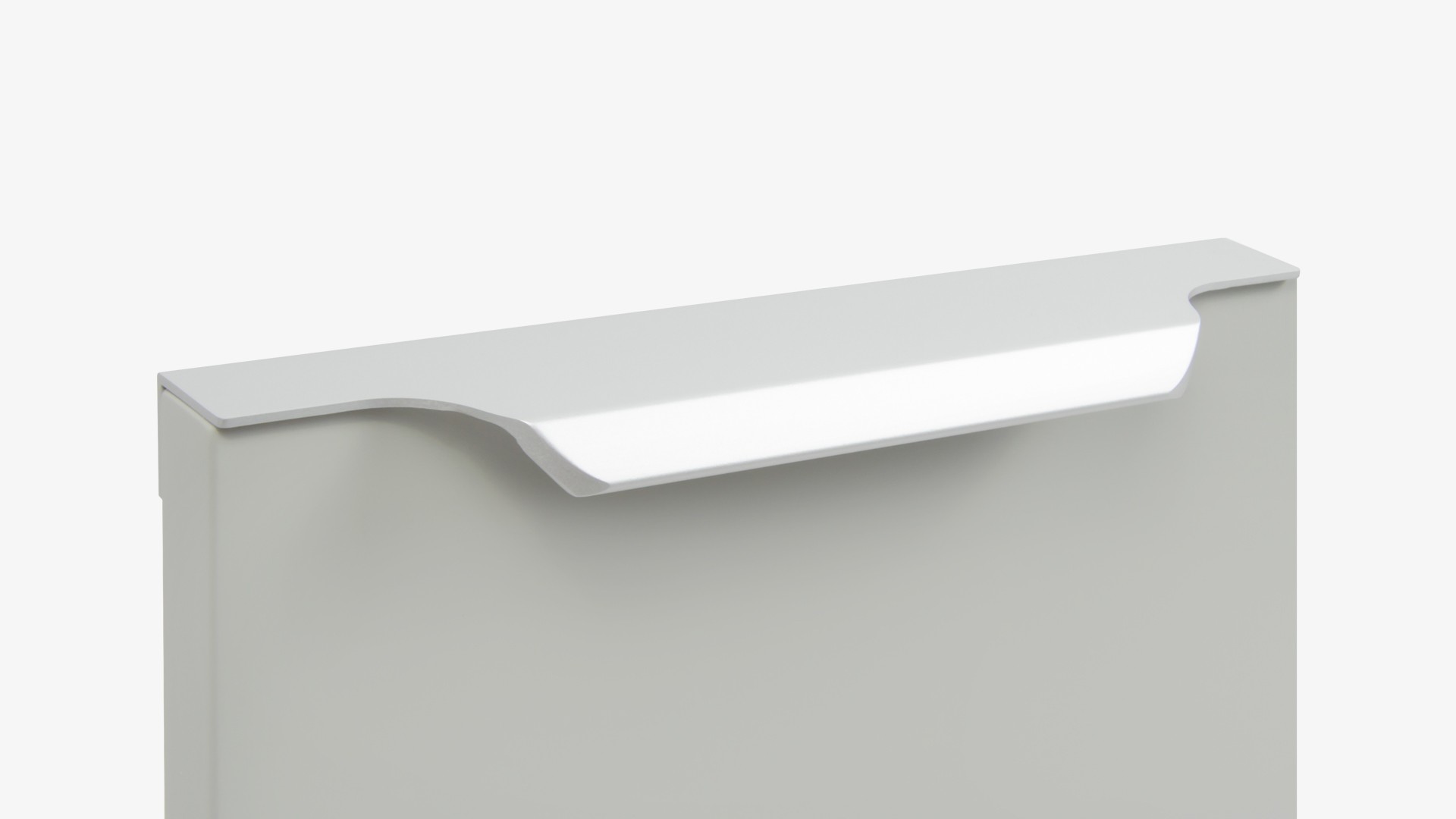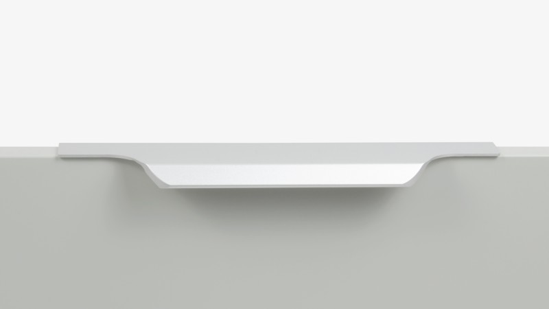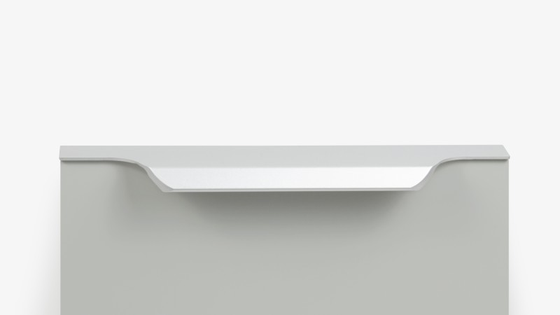 TERA подойдёт как для узких бутылочниц и корзин-карго, так и ящиков формата макси. Торцевую ручку, независимо от размера, можно устанавливать не только чётко в размер фасада, но и как широкий язычок. Ручки в виде язычков прекрасно выполняют свою функциональную и эстетическую роль на более широких фасадах.