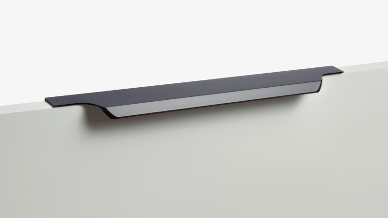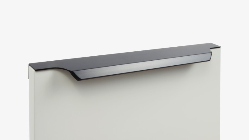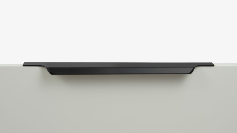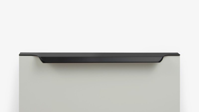 ТЕРА подойдёт как для узких бутылочниц и корзин-карго, так и ящиков формата макси. Торцевую ручку, независимо от размера, можно устанавливать не только чётко в размер фасада, но и как широкий язычок. Ручки в виде язычков прекрасно выполняют свою функциональную и эстетическую роль на более широких фасадах.