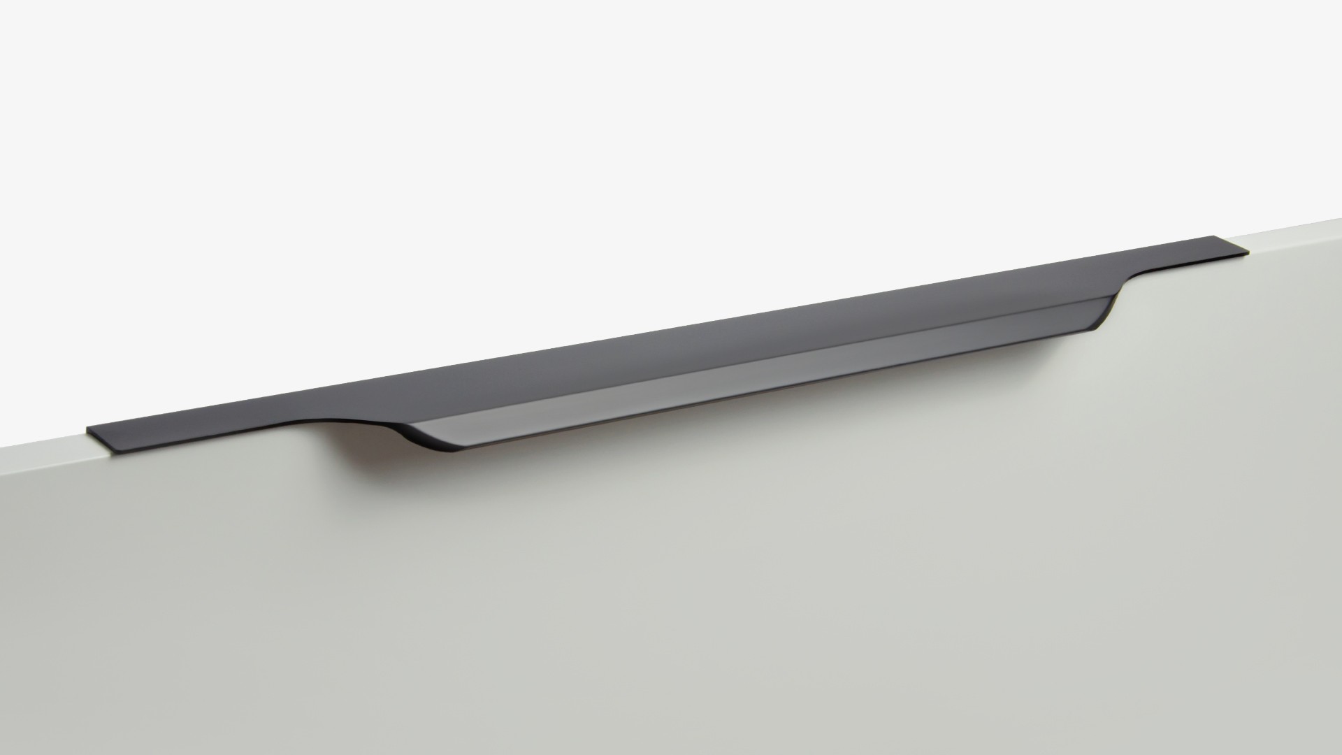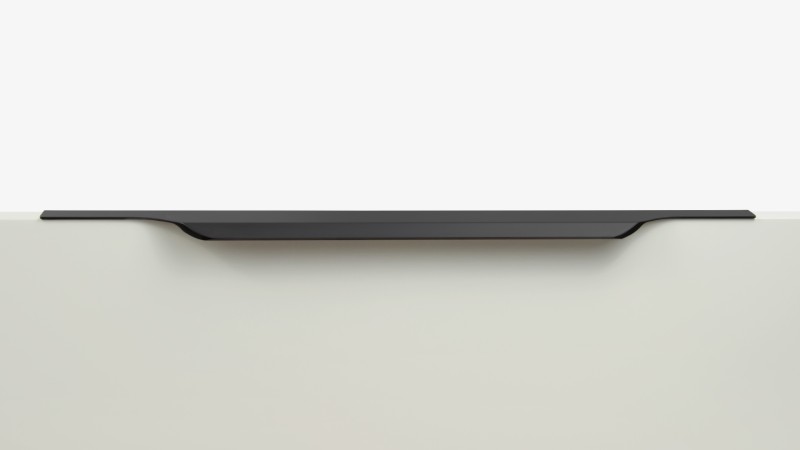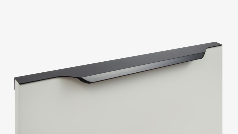 ТЕРА подойдёт как для узких бутылочниц и корзин-карго, так и ящиков формата макси. Торцевую ручку, независимо от размера, можно устанавливать не только чётко в размер фасада, но и как широкий язычок. Ручки в виде язычков прекрасно выполняют свою функциональную и эстетическую роль на более широких фасадах.