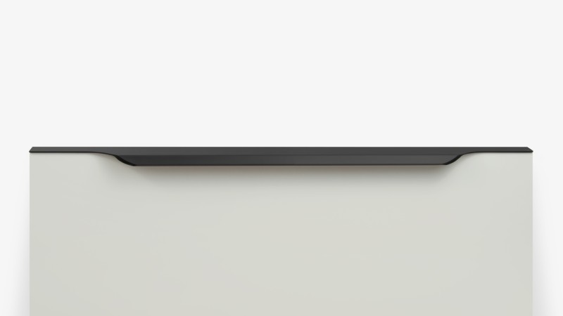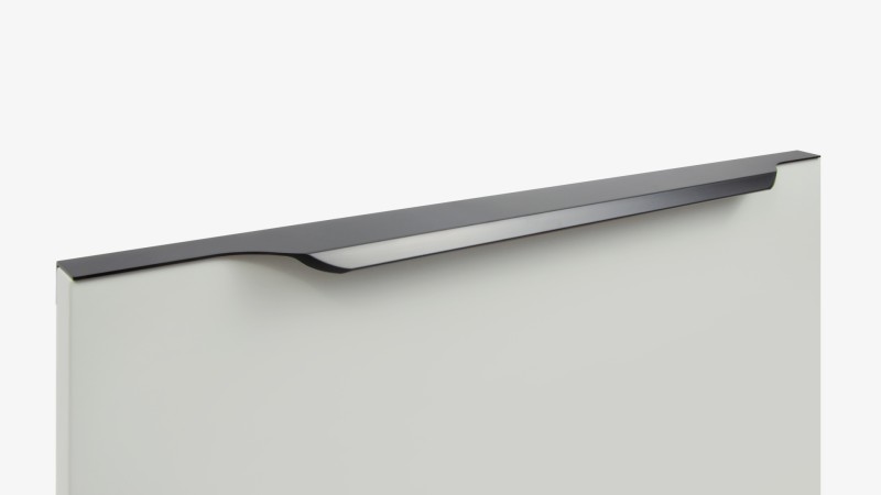 TERA подойдёт как для узких бутылочниц и корзин-карго, так и ящиков формата макси. Торцевую ручку, независимо от размера, можно устанавливать не только чётко в размер фасада, но и как широкий язычок. Ручки в виде язычков прекрасно выполняют свою функциональную и эстетическую роль на более широких фасадах.