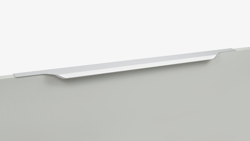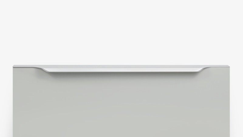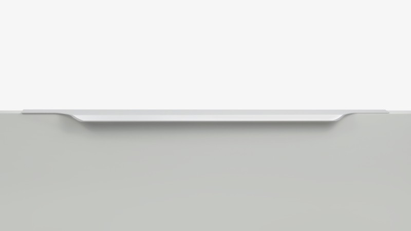 ТЕРА подойдёт как для узких бутылочниц и корзин-карго, так и ящиков формата макси. Торцевую ручку, независимо от размера, можно устанавливать не только чётко в размер фасада, но и как широкий язычок. Ручки в виде язычков прекрасно выполняют свою функциональную и эстетическую роль на более широких фасадах.