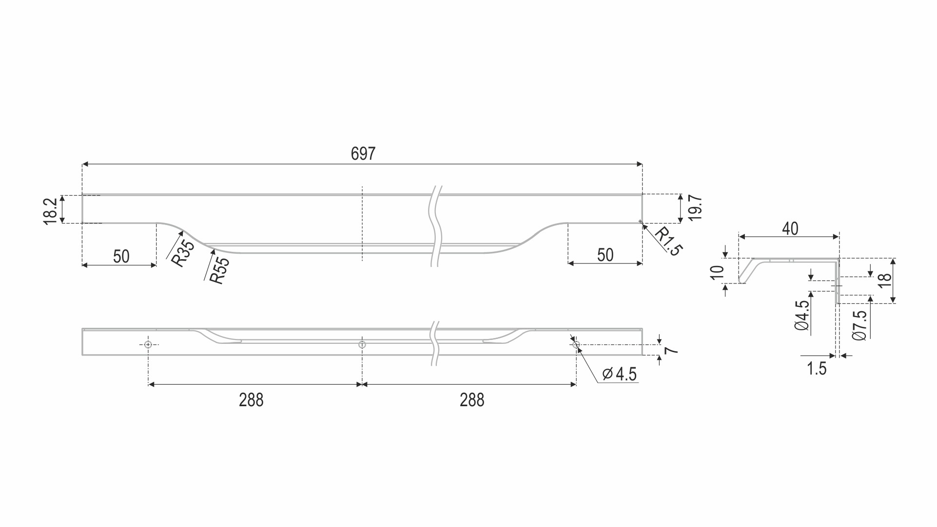 Модель крепится на фасады толщиной 16-18 мм методом наложения и фиксируется при помощи саморезов. Саморезы не входят в комплект и приобретаются отдельно. Размер саморезов необходимо подобрать самостоятельно, исходя из толщины фасада, на который будет устанавливаться ручка.