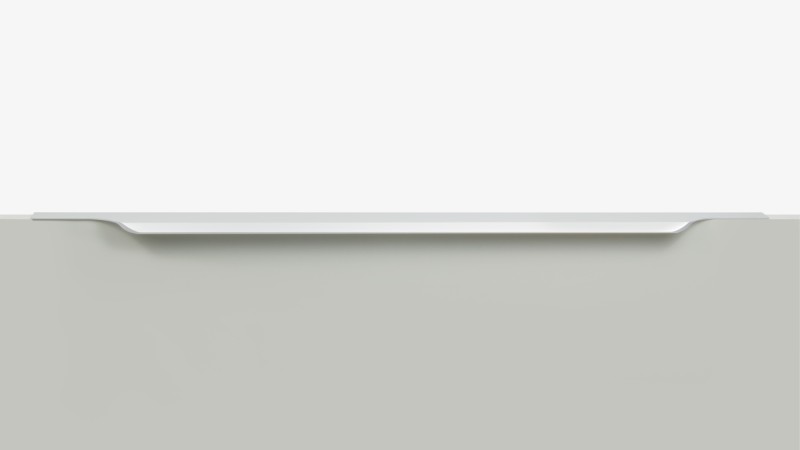 TERA подойдёт как для узких бутылочниц и корзин-карго, так и ящиков формата макси. Торцевую ручку, независимо от размера, можно устанавливать не только чётко в размер фасада, но и как широкий язычок. Ручки в виде язычков прекрасно выполняют свою функциональную и эстетическую роль на более широких фасадах.