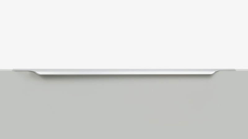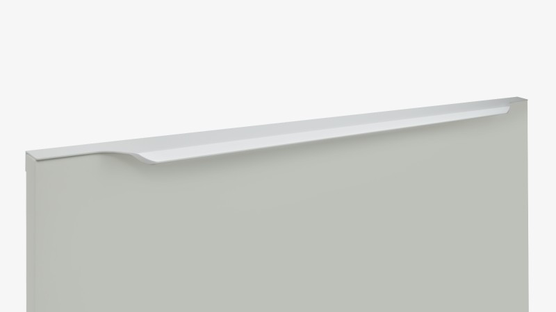 TERA подойдёт как для узких бутылочниц и корзин-карго, так и ящиков формата макси. Торцевую ручку, независимо от размера, можно устанавливать не только чётко в размер фасада, но и как широкий язычок. Ручки в виде язычков прекрасно выполняют свою функциональную и эстетическую роль на более широких фасадах.