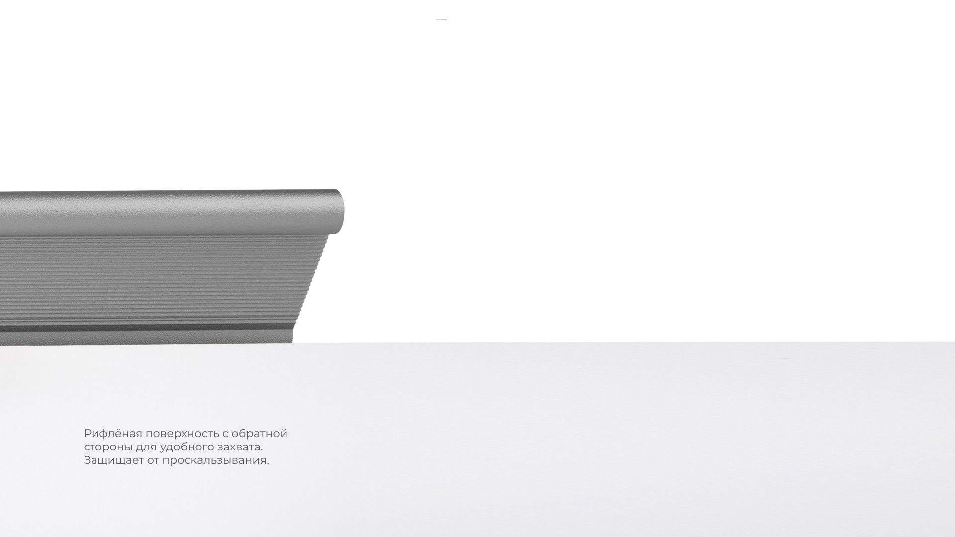 МЕТРИКА RT112 — торцевая ручка из алюминия, с геометричным выступом и рифлением в зоне захвата для эргономичного использования. Устанавливается наложением, подходит для фасадов толщиной от 16 мм до 20 мм.
