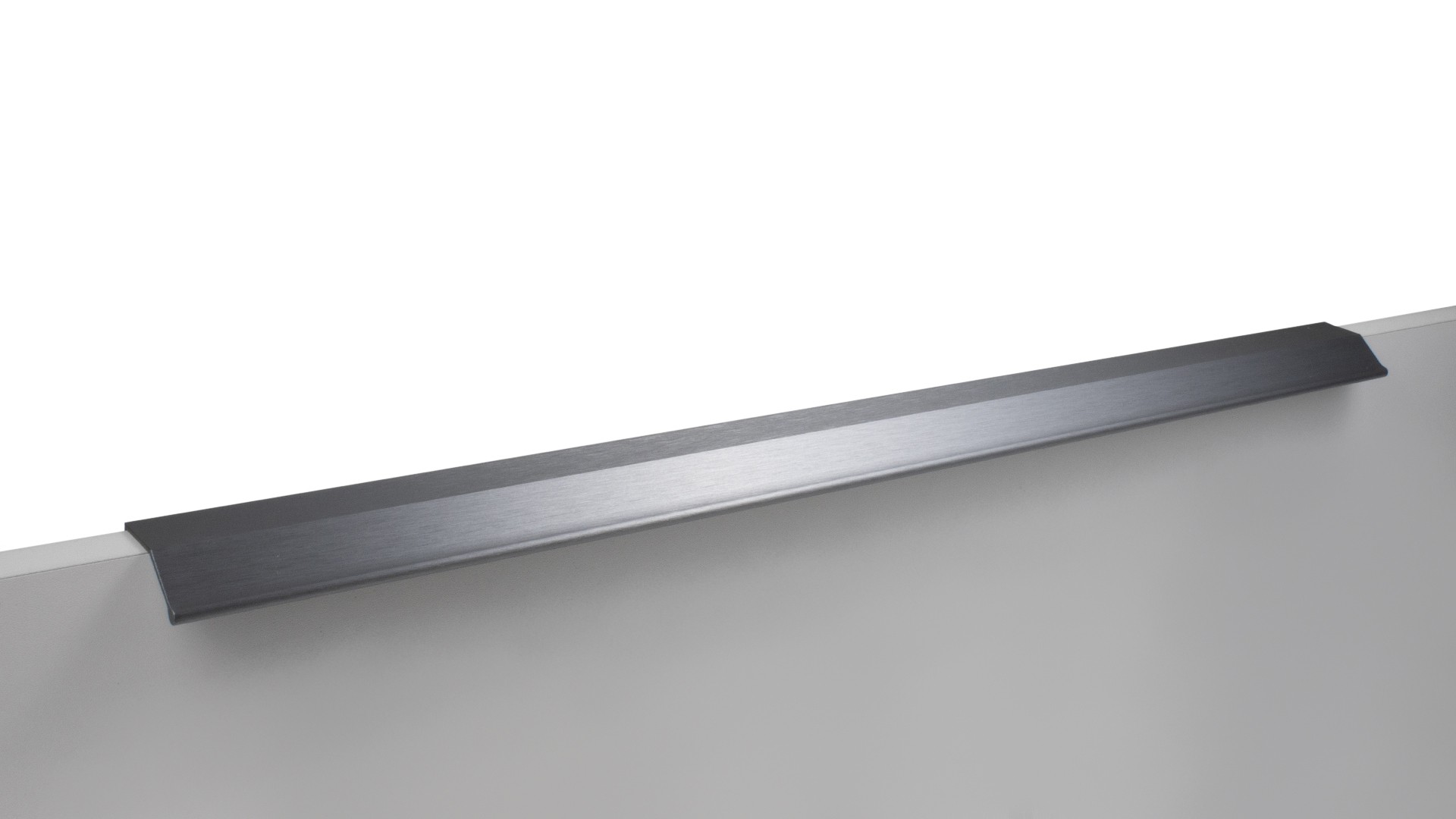 METRICA RT112 — торцевая ручка из алюминия, с геометричным выступом и рифлением в зоне захвата для эргономичного использования. Устанавливается наложением, подходит для фасадов толщиной от 16 мм до 20 мм.